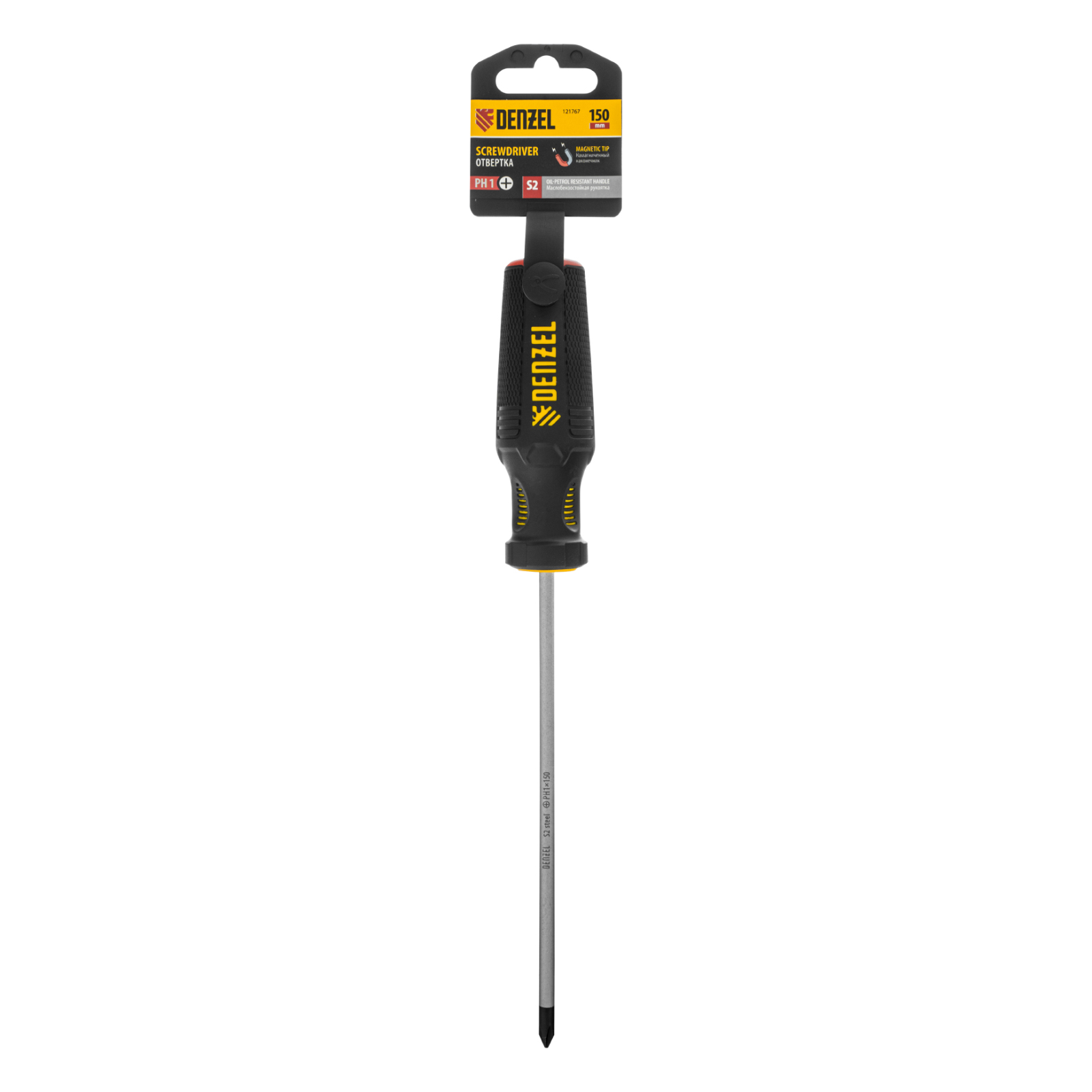 Отвертка Denzel 121767 с трехкомпонентной рукояткой, со стержнем из стали S2, длиной 150 мм, предназначена для закручивания и откручивания резьбового крепежа типа PH1. Высокоточный намагниченный шлиц избавляет мастера от необходимости придерживать винт или саморез рукой. Отвертка рекомендована для профессионального использования.