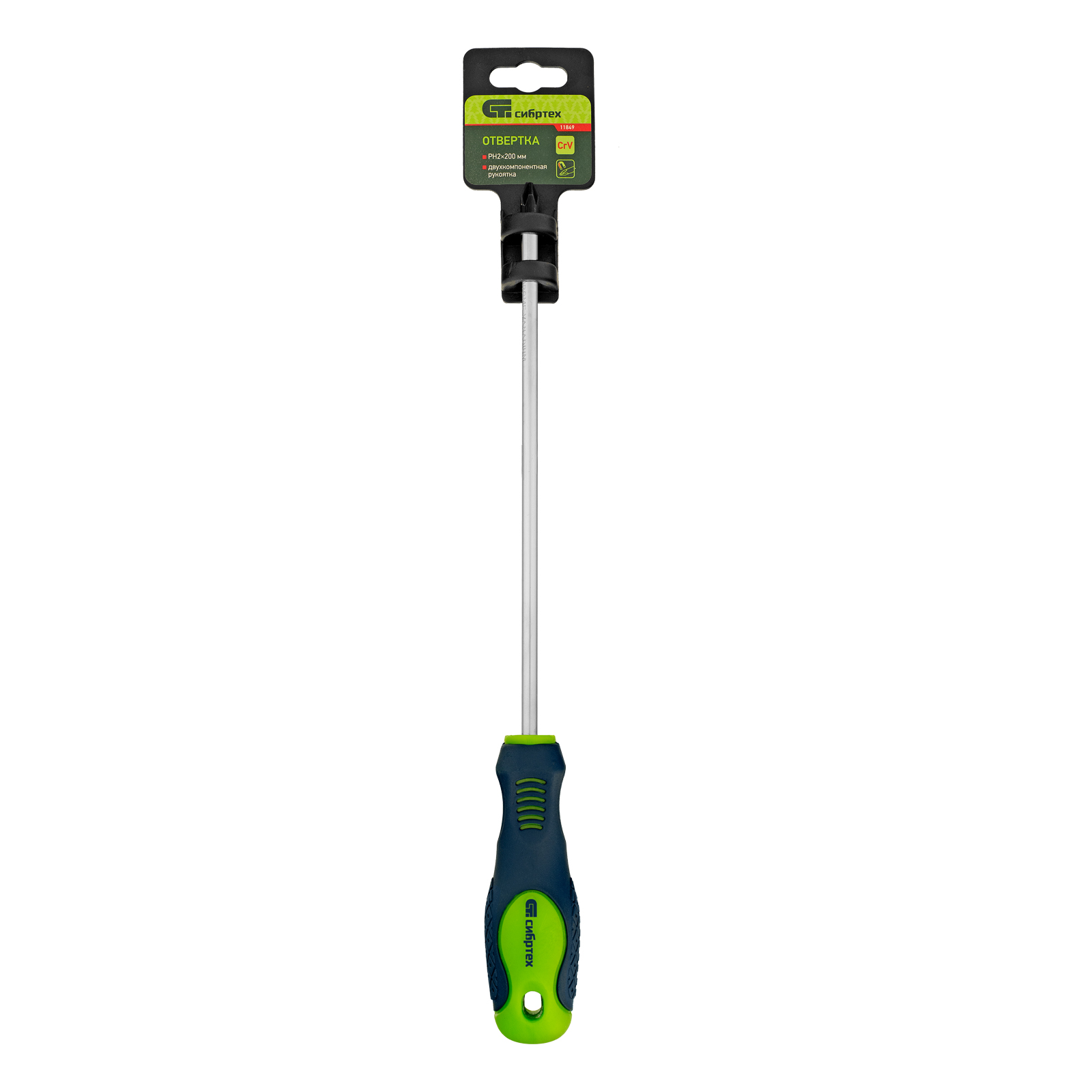 Отвертка, PH2 х 200 мм, CrV, двухкомпонентная рукоятка Сибртех в Челябинске