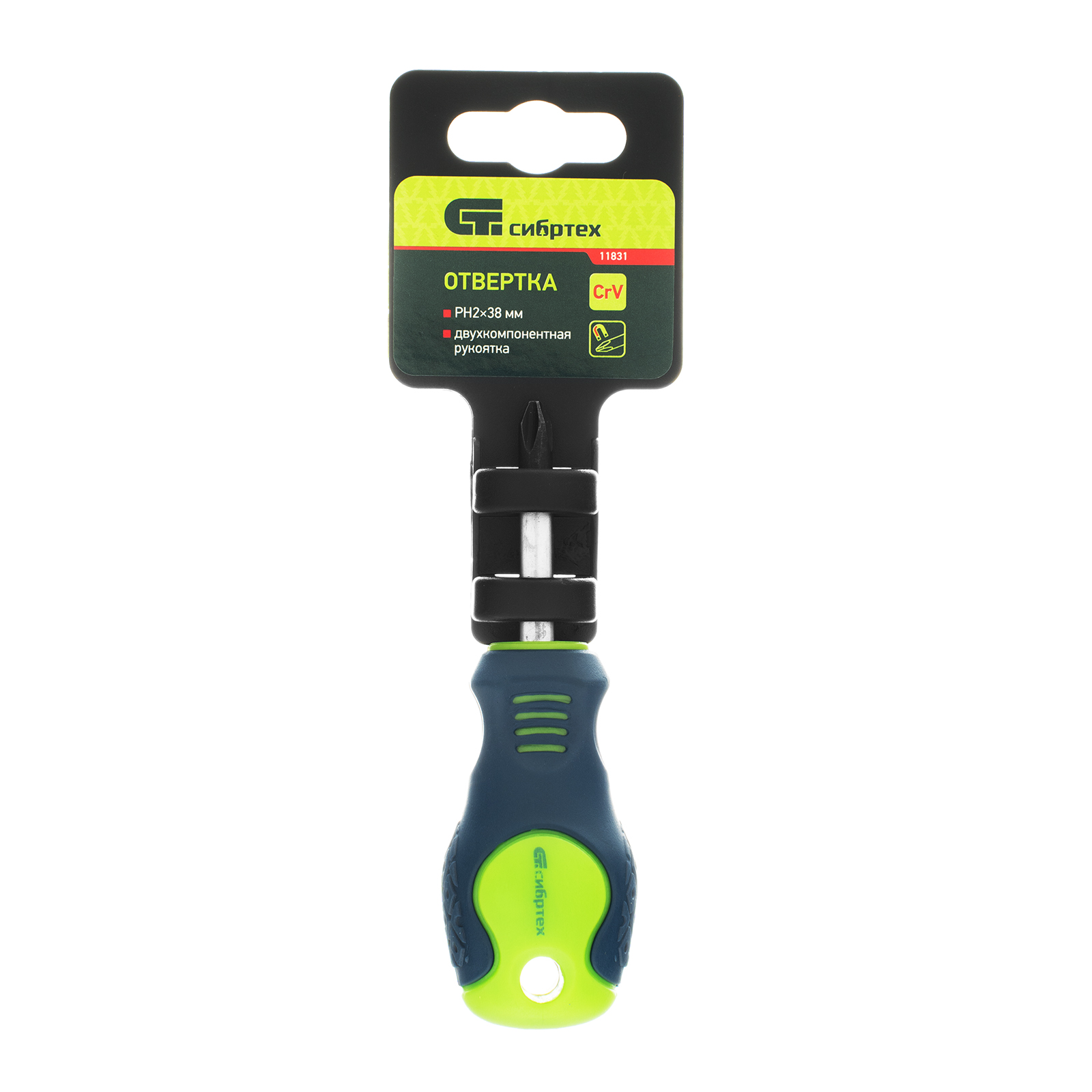 Отвертка Сибртех 11831 типоразмера PH2 х 38 мм, из стали CrV, с двухкомпонентной рукояткой и крестовым шлицем, позволяет проводить монтаж/демонтаж крепежных элементов типа Phillips. Полупрофессиональная отвертка поможет отремонтировать бытовую технику, повесить полки, собрать мебель и выполнить другие работы. Благодаря укороченному стержню ей можно работать в ограниченном пространстве.