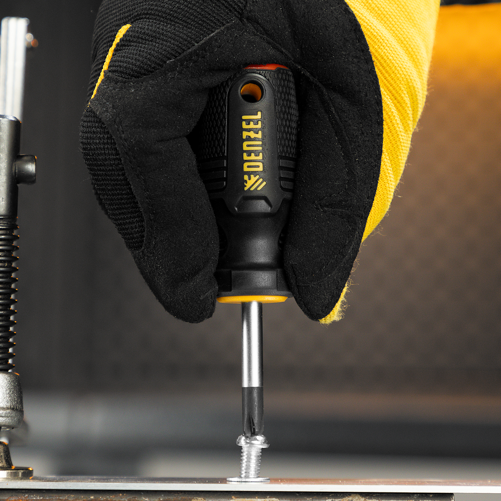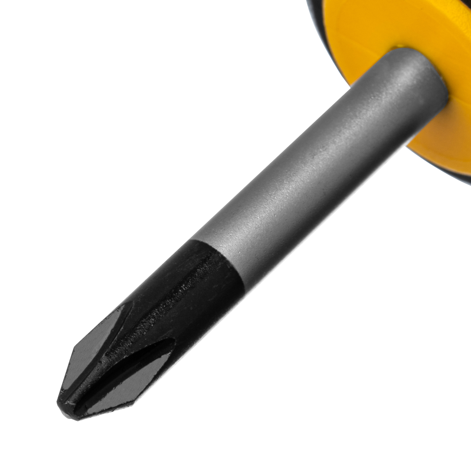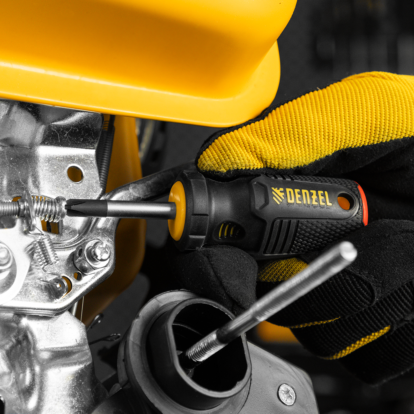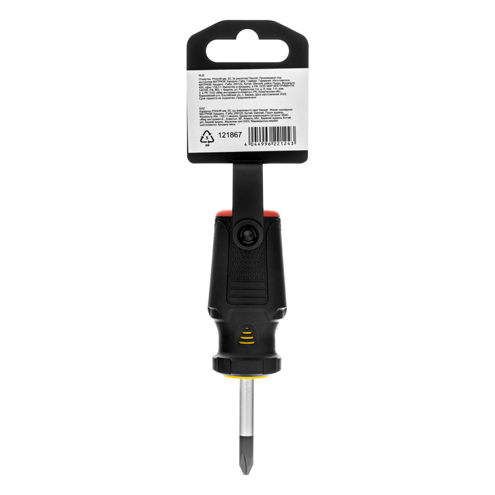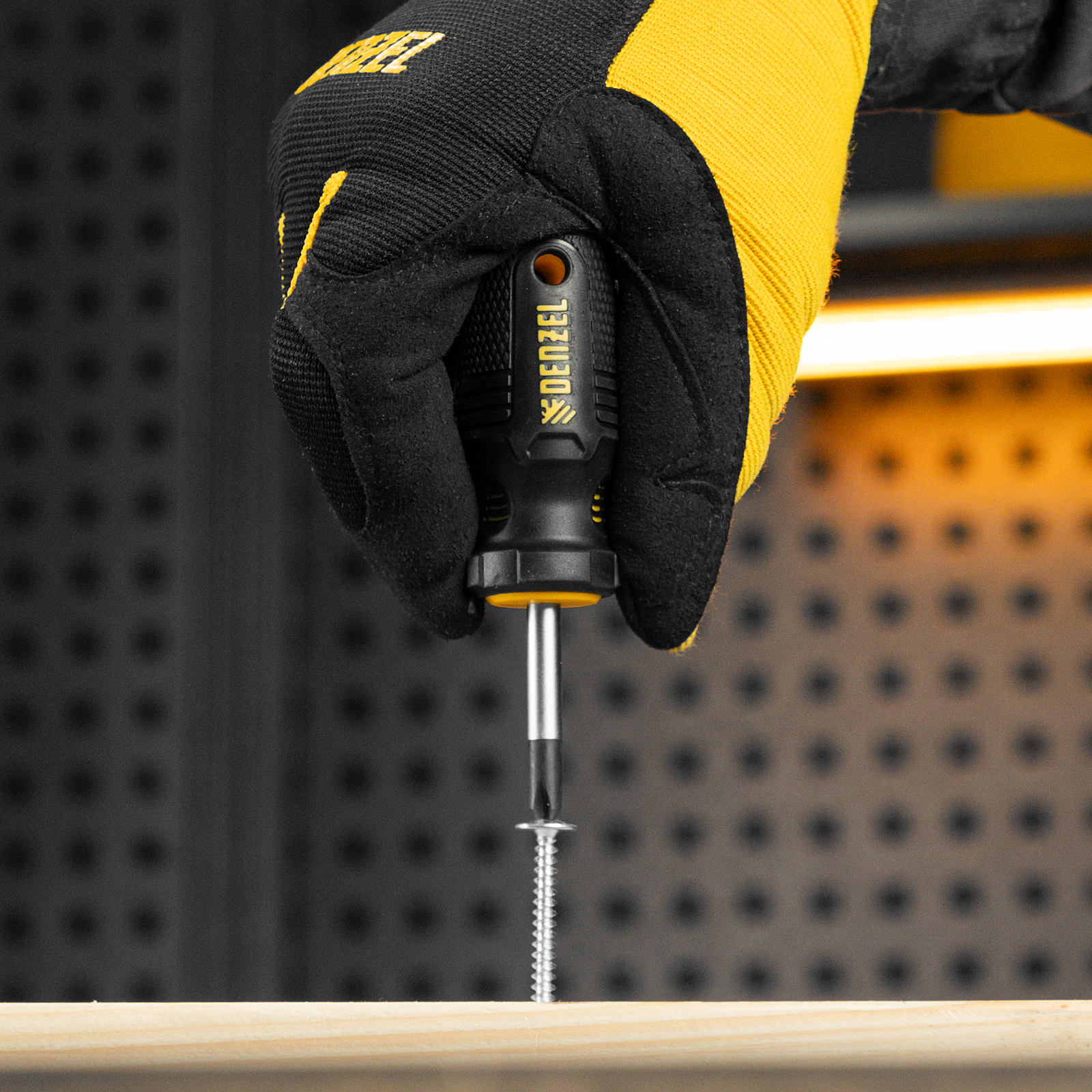 Отвертка Denzel 121867 с трехкомпонентной рукояткой, со стержнем из стали S2, длиной 38 мм, предназначена для закручивания и откручивания резьбового крепежа типа PH2. Удобна для работы в ограниченном пространстве. Высокоточный намагниченный шлиц избавляет мастера от необходимости придерживать винт или саморез рукой. Отвертка рекомендована для профессионального использования.