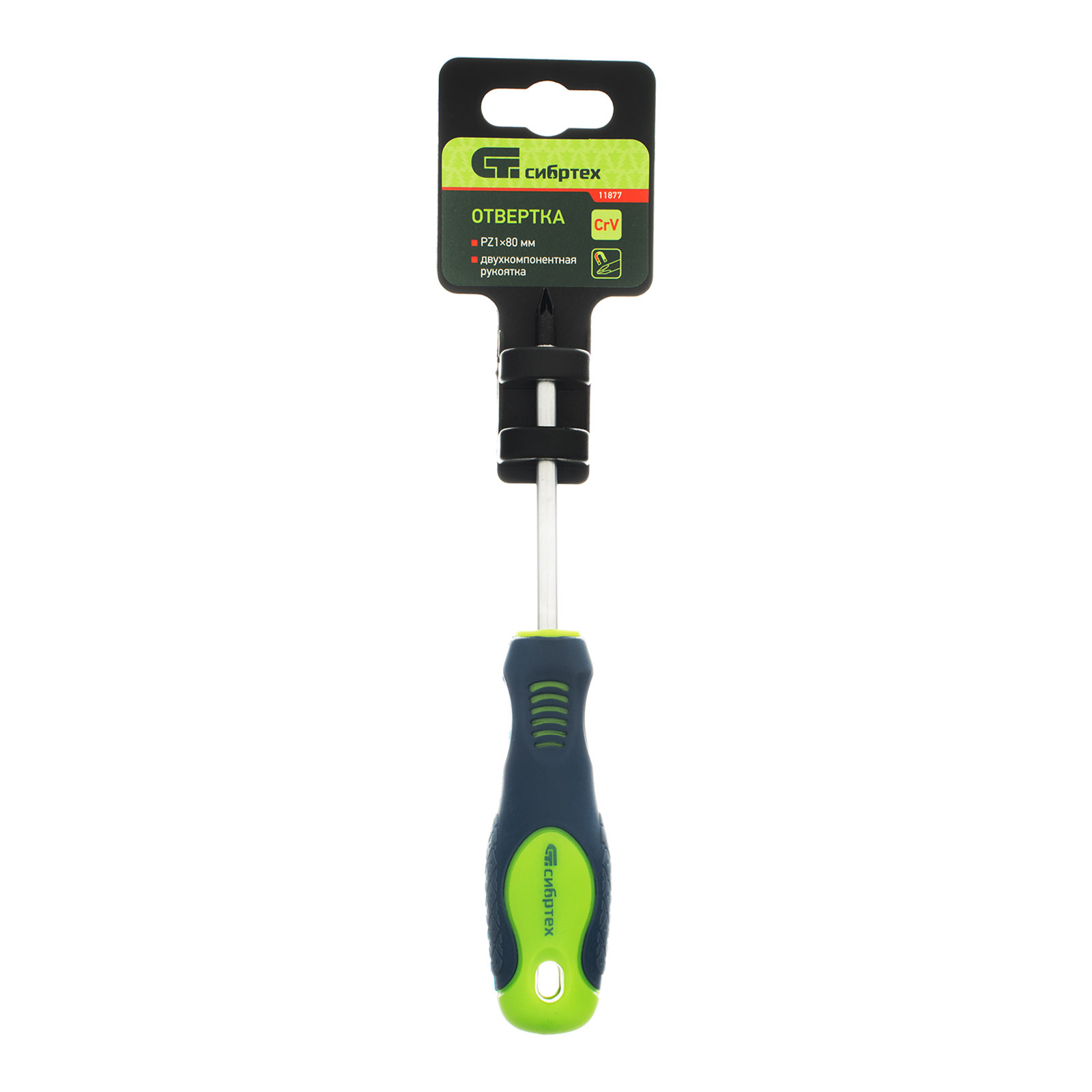 Отвертка, PZ1 х 80 мм, CrV, двухкомпонентная рукоятка Сибртех в Челябинске