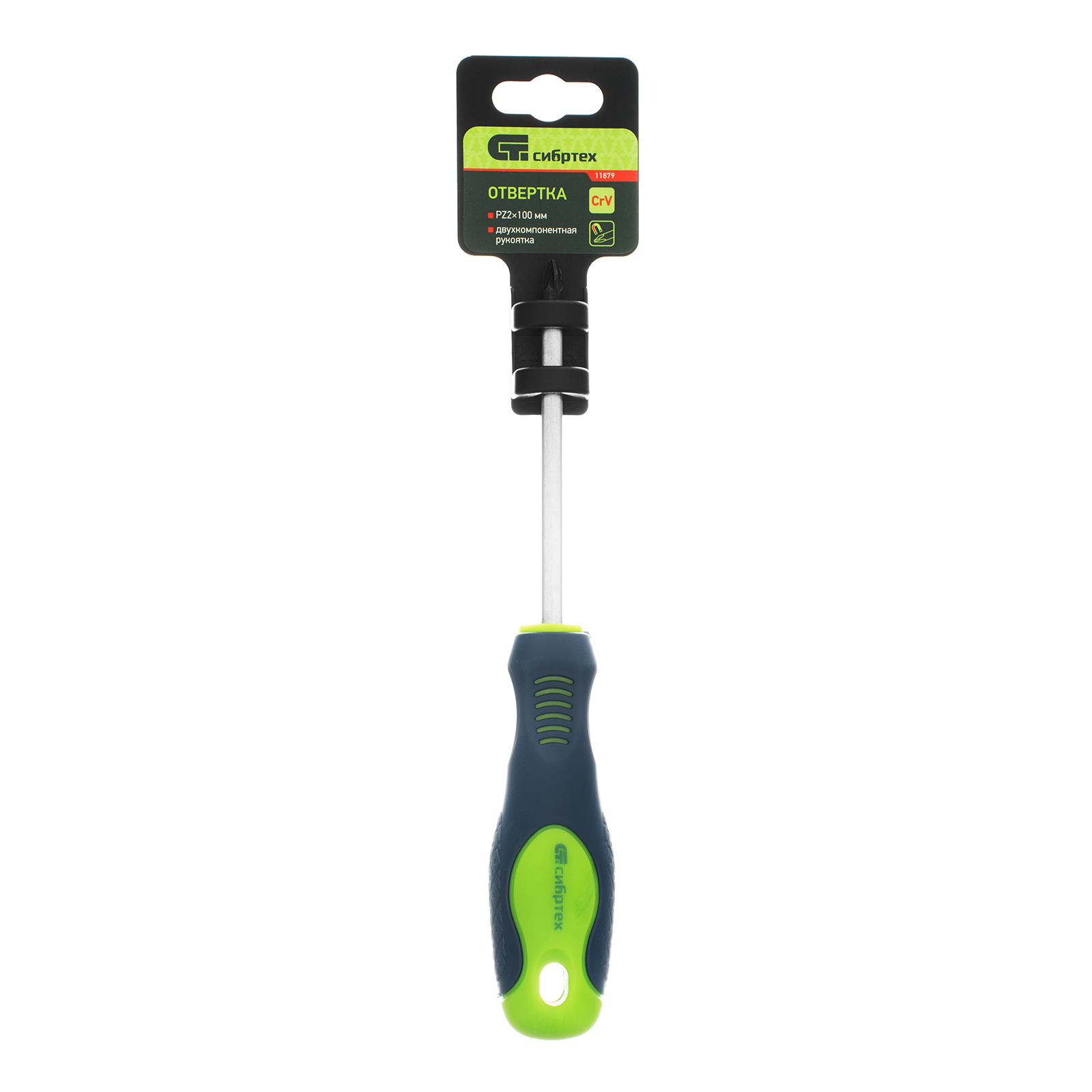 Отвертка, PZ2 х 100 мм, CrV, двухкомпонентная рукоятка Сибртех в Челябинске