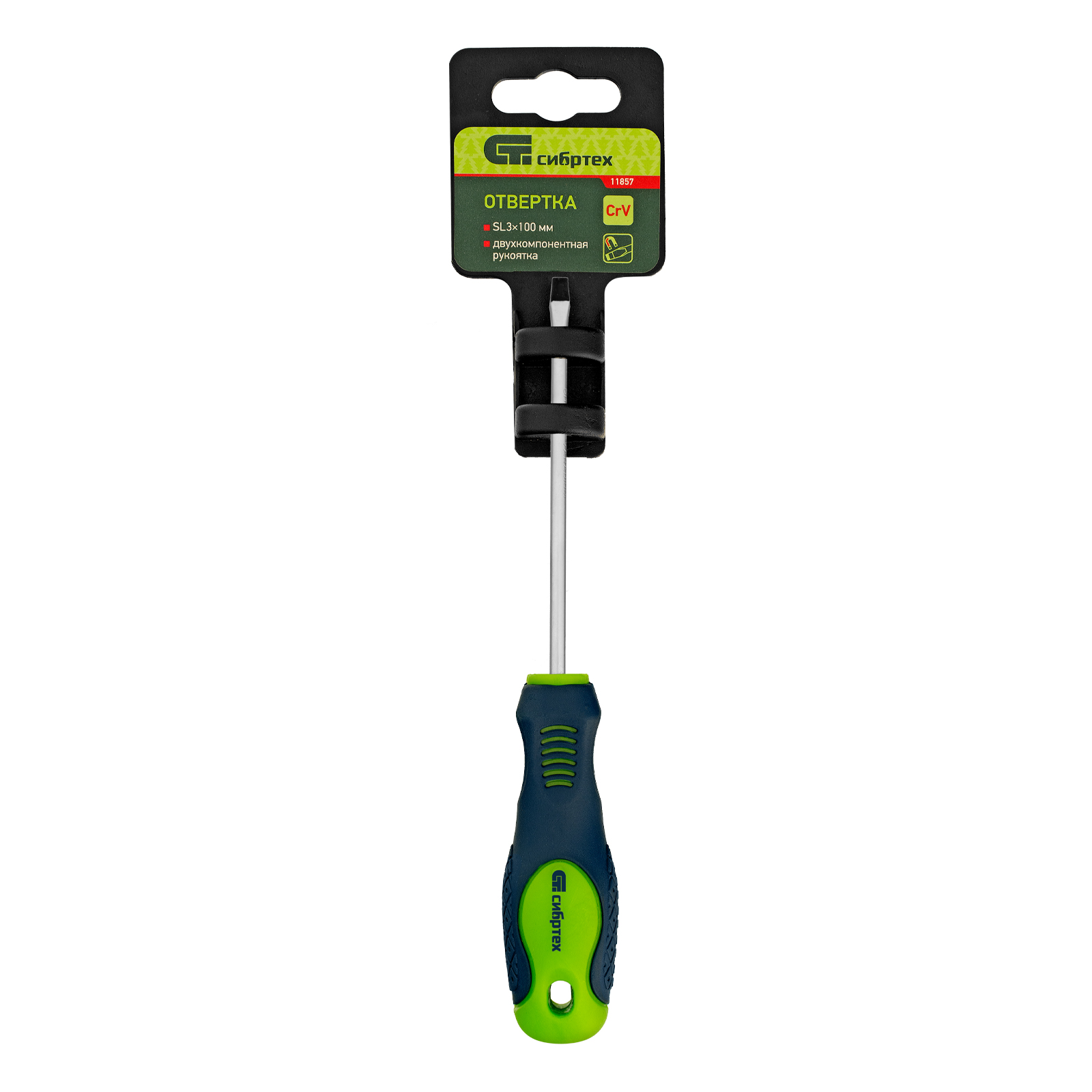 Отвертка, SL3 х 100 мм, CrV, двухкомпонентная рукоятка Сибртех в Челябинске