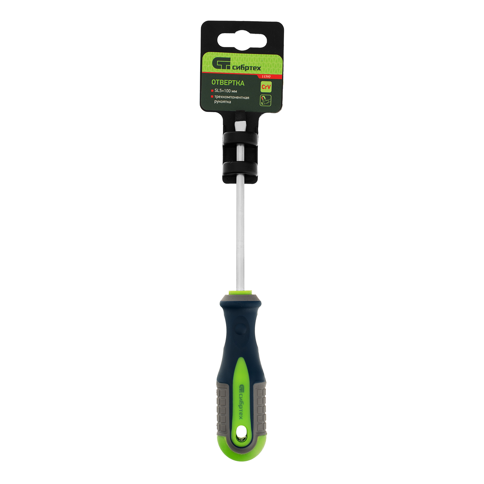 Отвертка, SL5 х 100 мм, CrV, трехкомпонентная рукоятка Сибртех в Челябинске