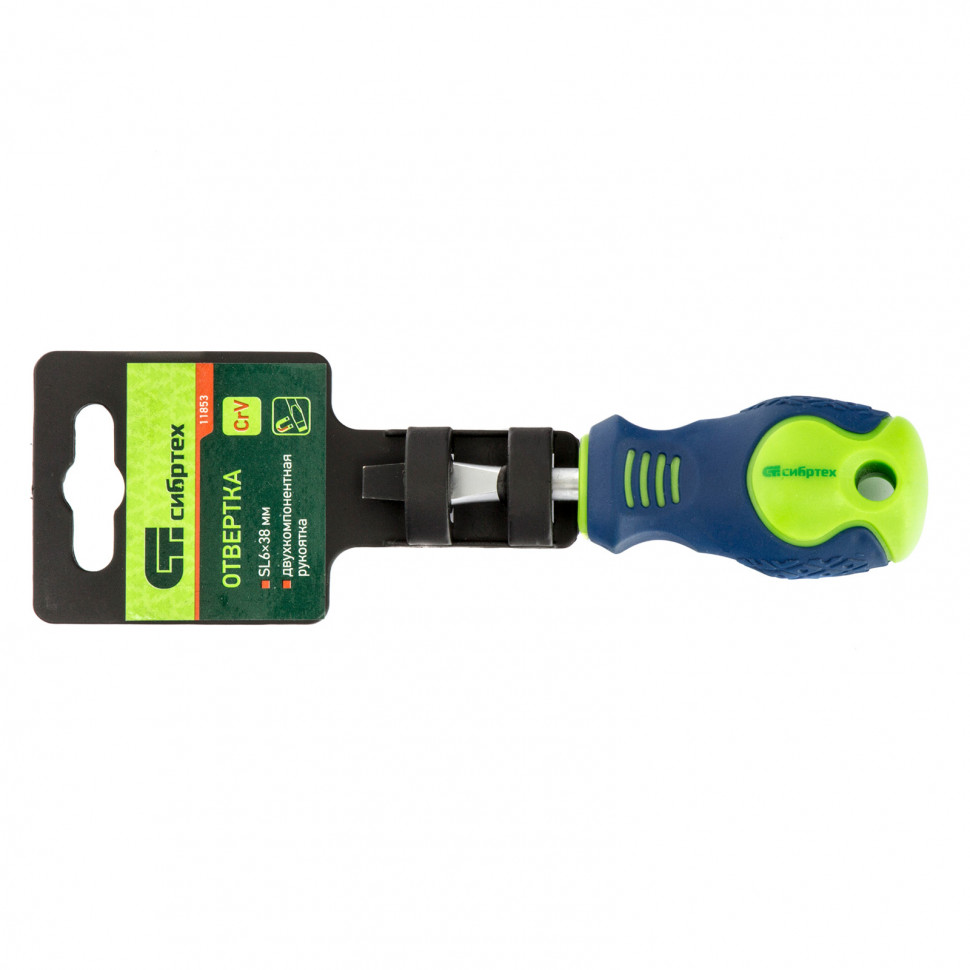 Отвертка Сибртех 11853, SL6 х 38 мм, из стали CrV, с 2-х компонентной рукояткой, подходит для работ, не требующих большого усилия затяжки. С ее помощью осуществляется монтаж/демонтаж крепежных элементов типа Slotted. Отвертка оснащена коротким стержнем 38 мм, поэтому подходит для работ в ограниченном пространстве, что актуально в автомастерских. Также она пригодится при проведении бытового ремонта.