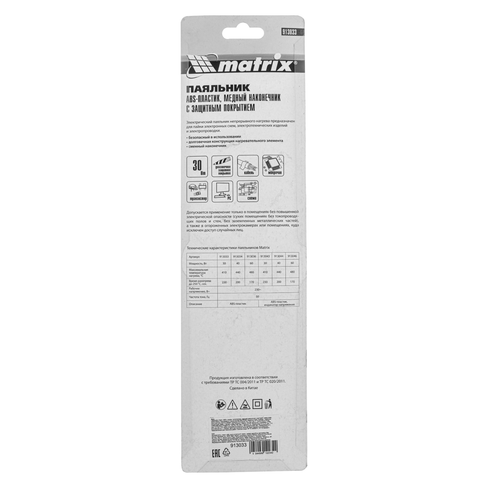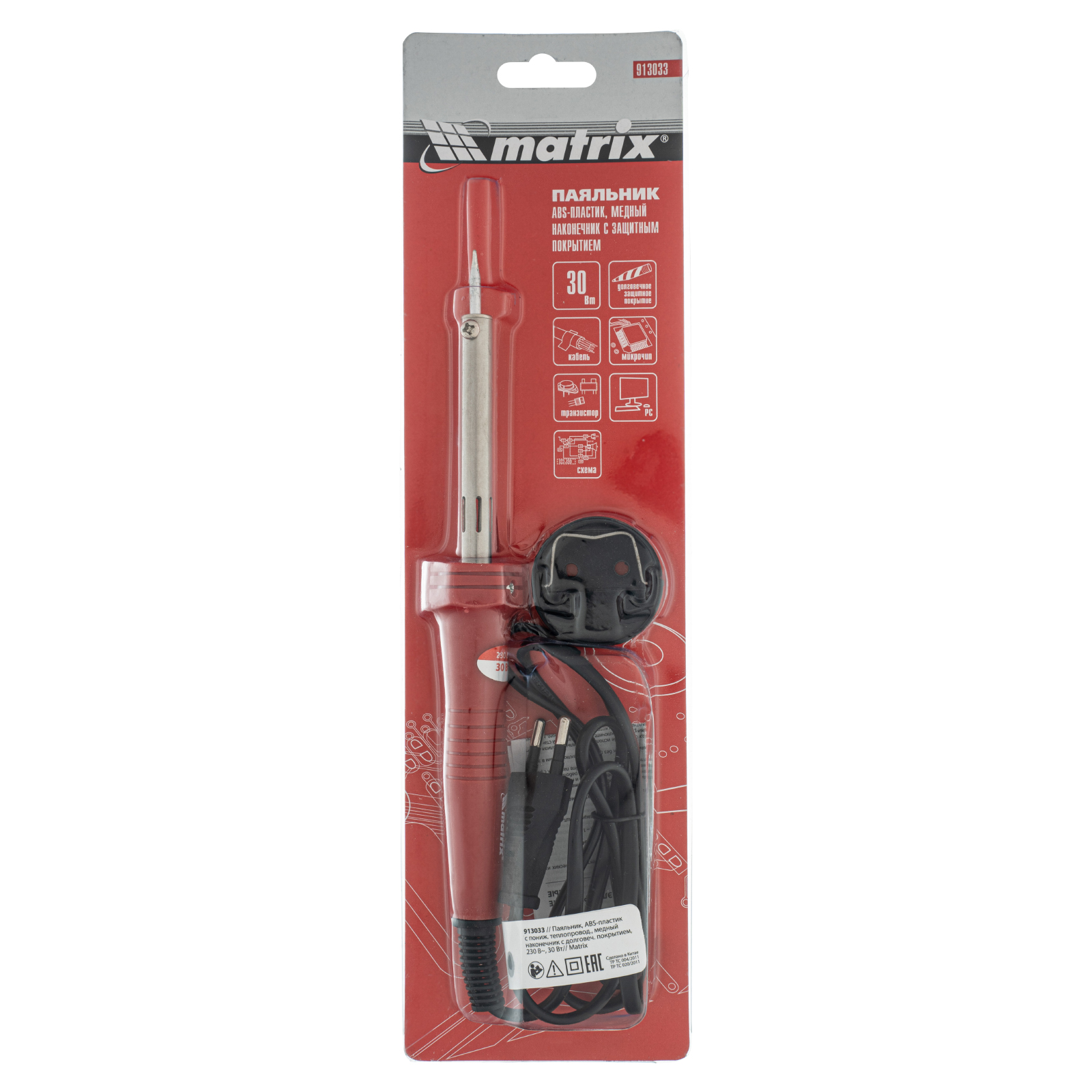 Паяльник, пластик ABS с пониженной теплопроводностью, медный наконечник с долговечным покрытием, 220 В, 30 W Matrix в Челябинске