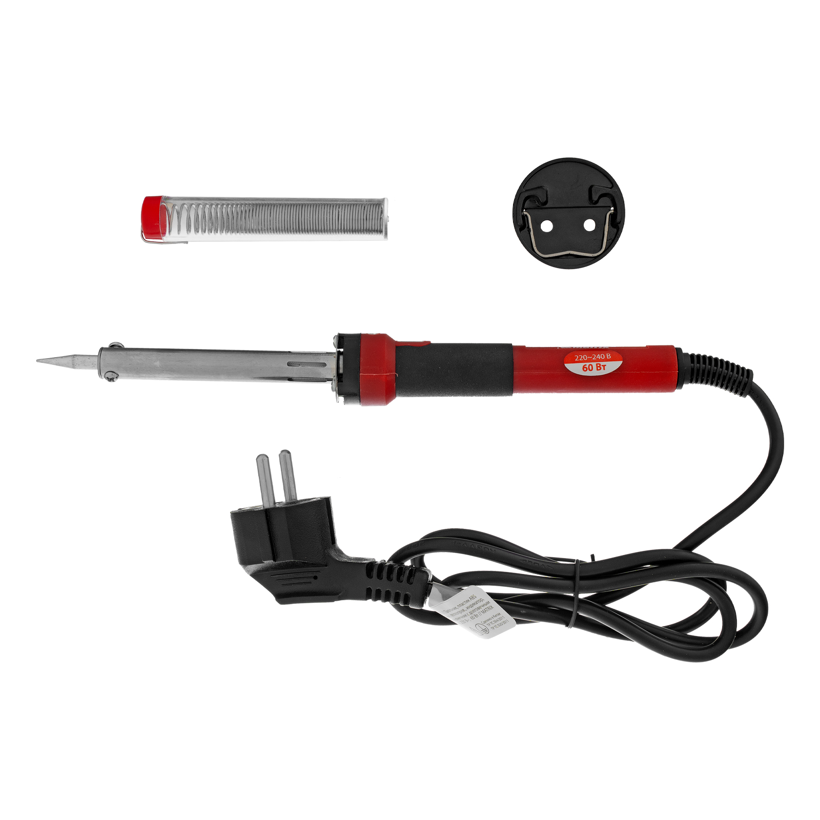 Паяльник - 1 штПодставка - 1 штПрипой в пластиковой тубе - 1 штИнструкция - 1 шт |