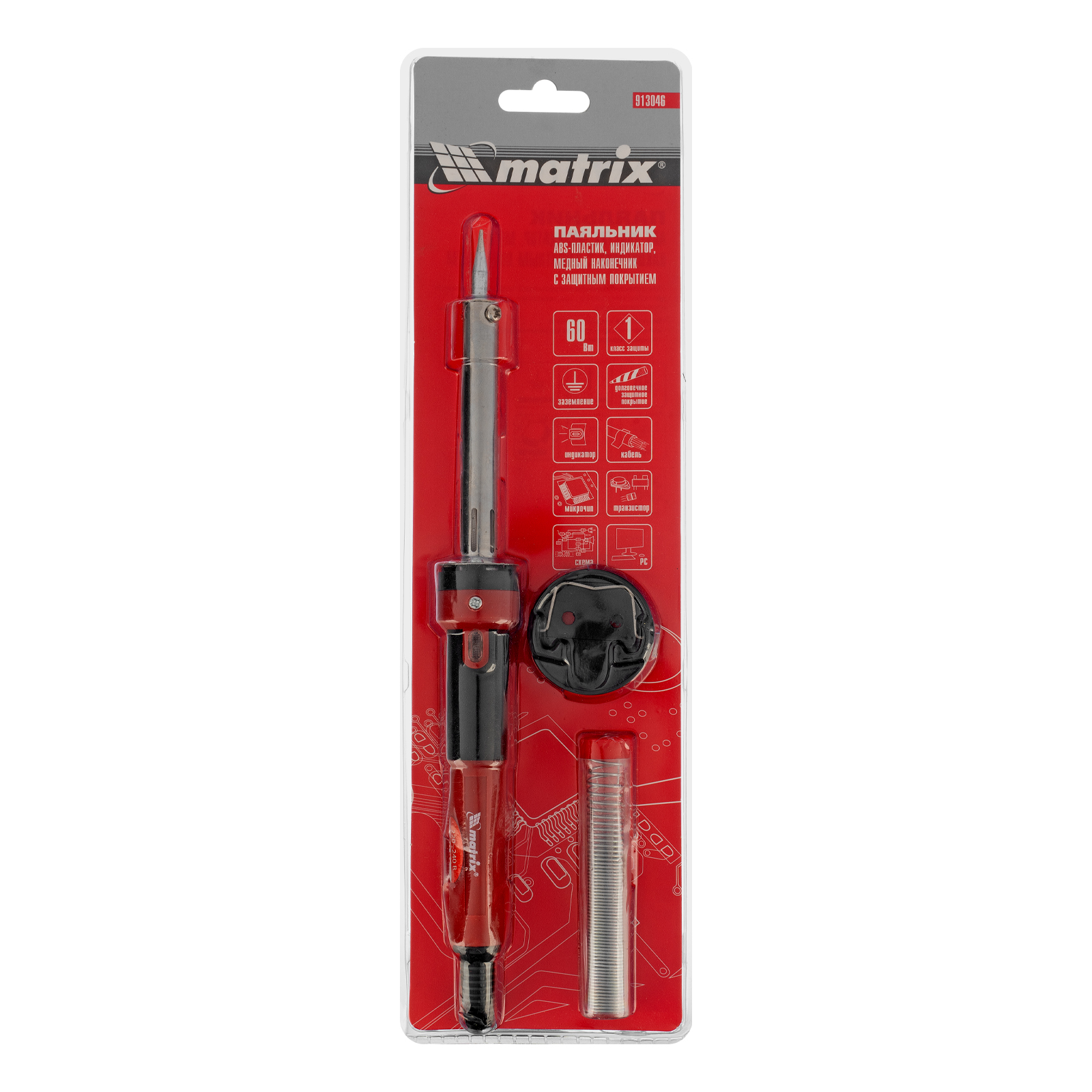 Паяльник, пластик ABS, класс защиты 1, индикатор, медный наконечник с долговечным покрытием, 220 В, 60 W Matrix в Челябинске