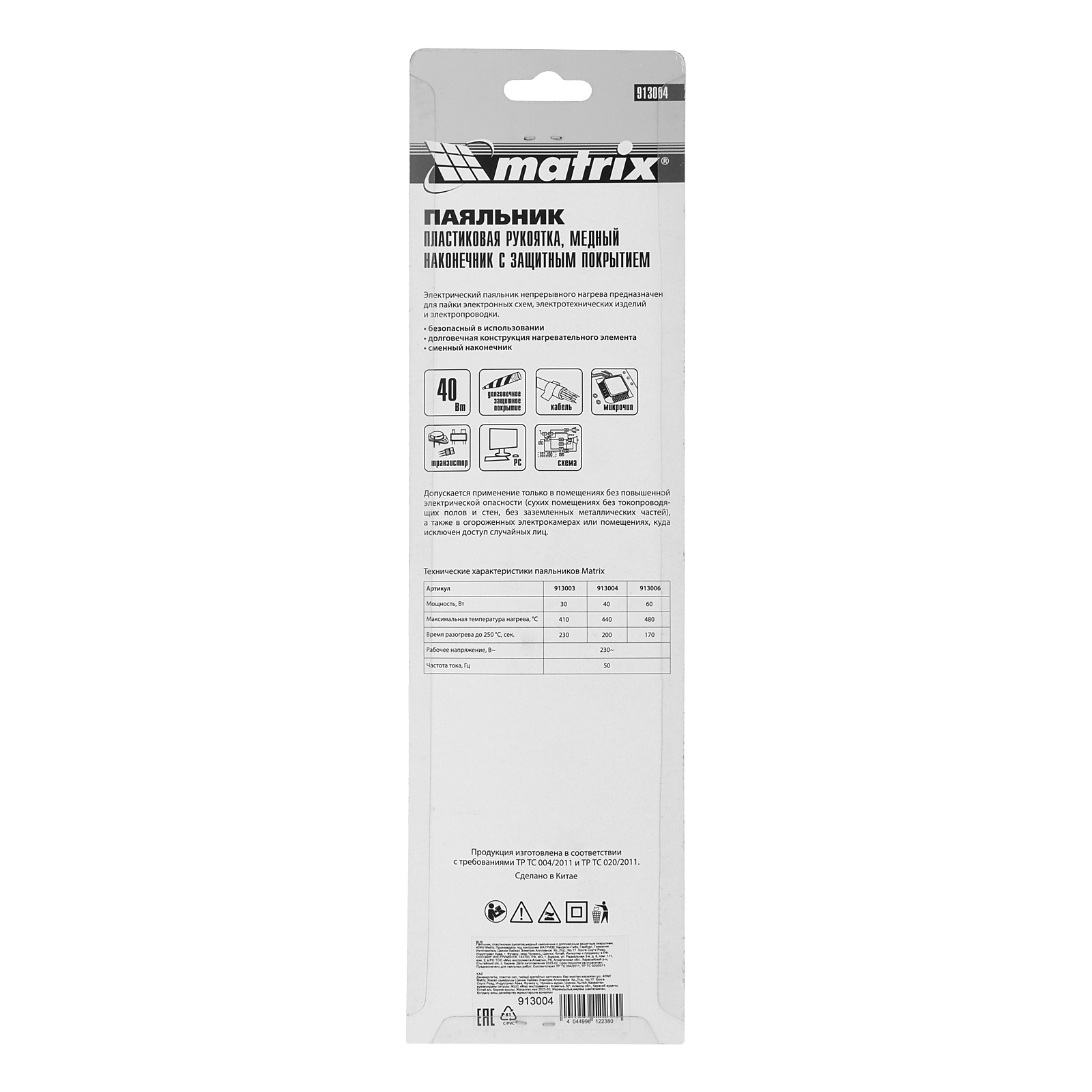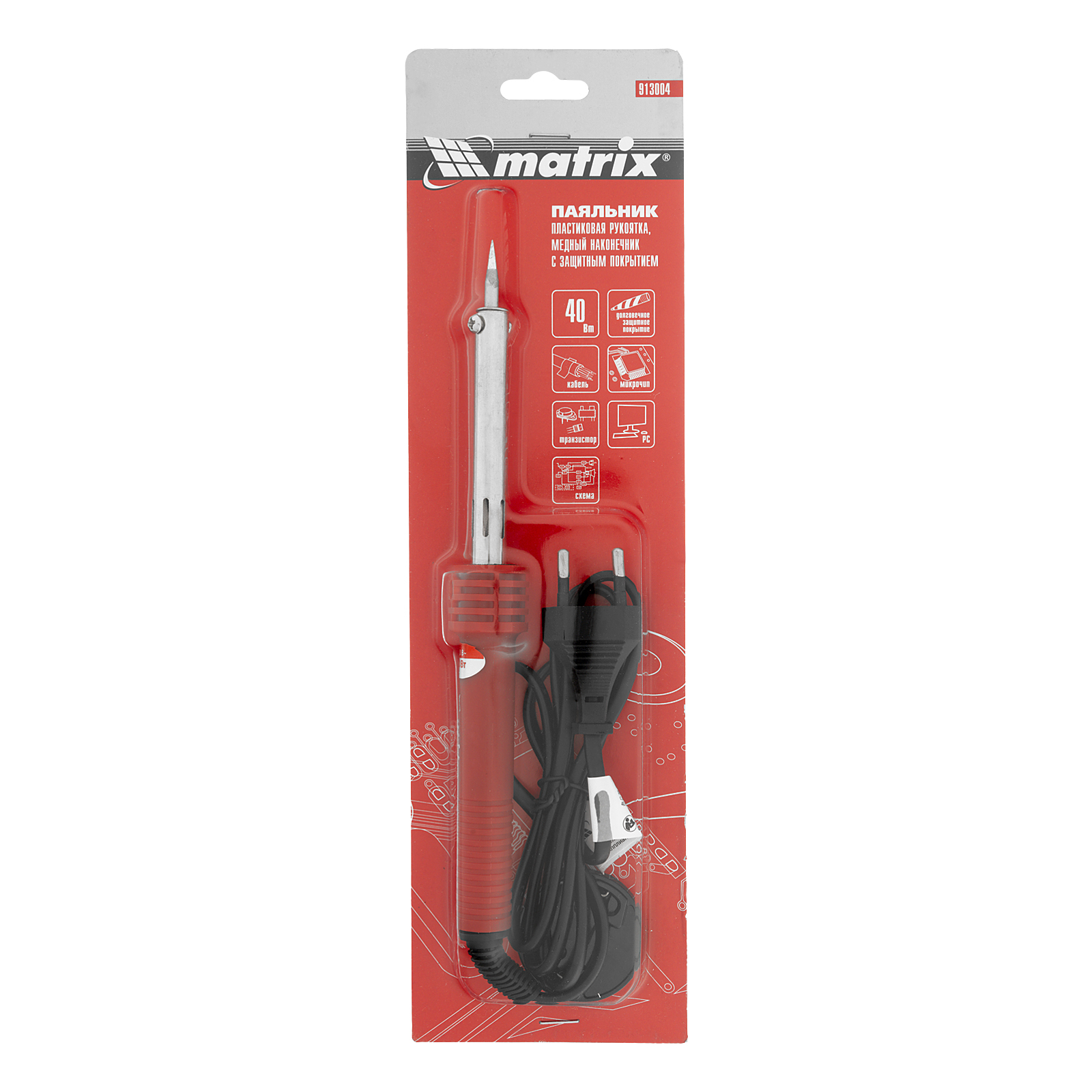 Паяльник, пластиковая рукоятка, медный наконечник с долговечным защитным покрытием, 220 В, 40 W Matrix в Челябинске