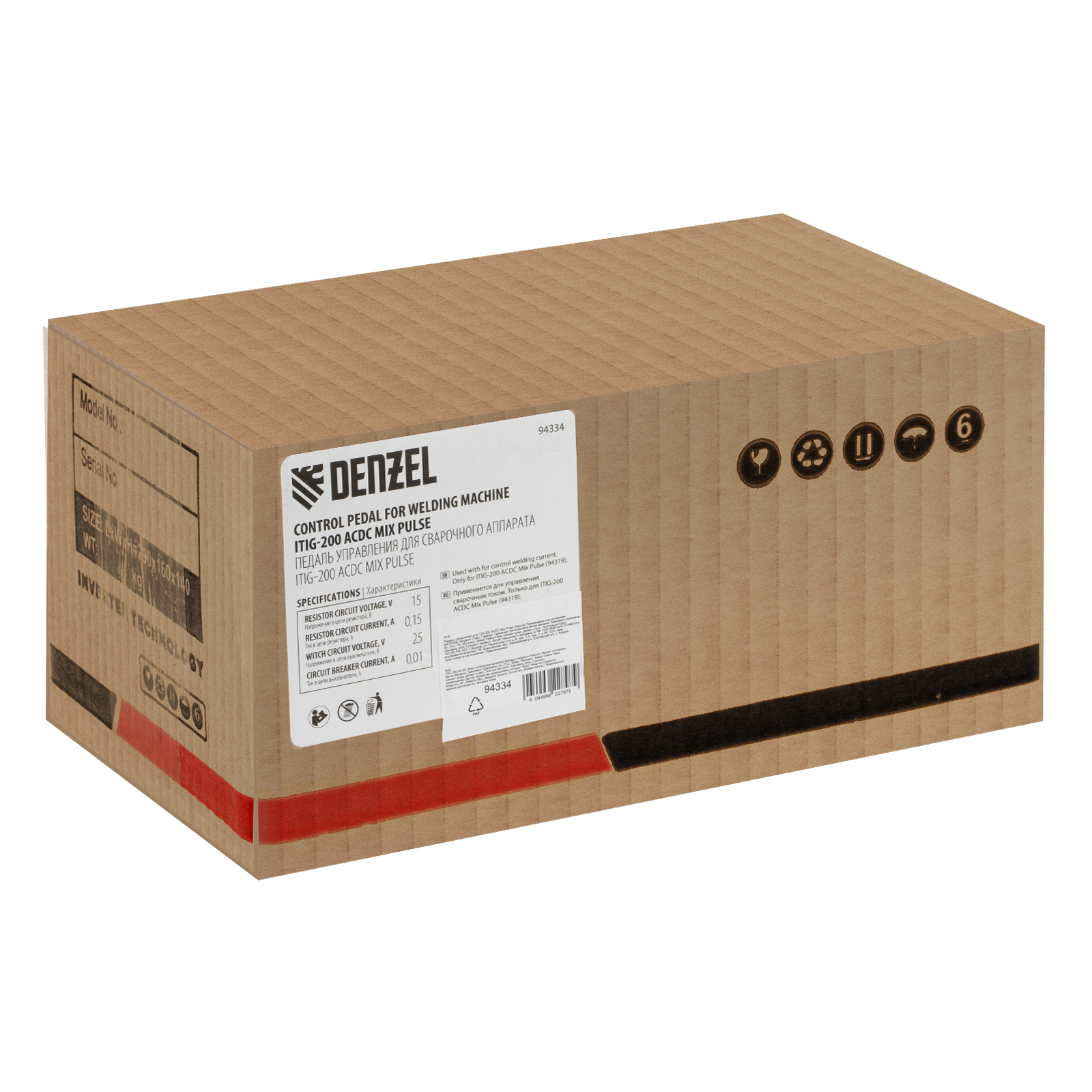 Педаль управления Denzel 94334 предназначена для работы со сварочным аппаратом Denzel ITIG-200 ACDC Mix Pulse. Нажатие на нее активирует высокочастотный поджиг дуги и открывает электромагнитный клапан подачи защитного газа. Педаль позволяет дистанционно регулировать сварочный ток в процессе работы: чем сильнее нажатие, тем больше значение силы тока.