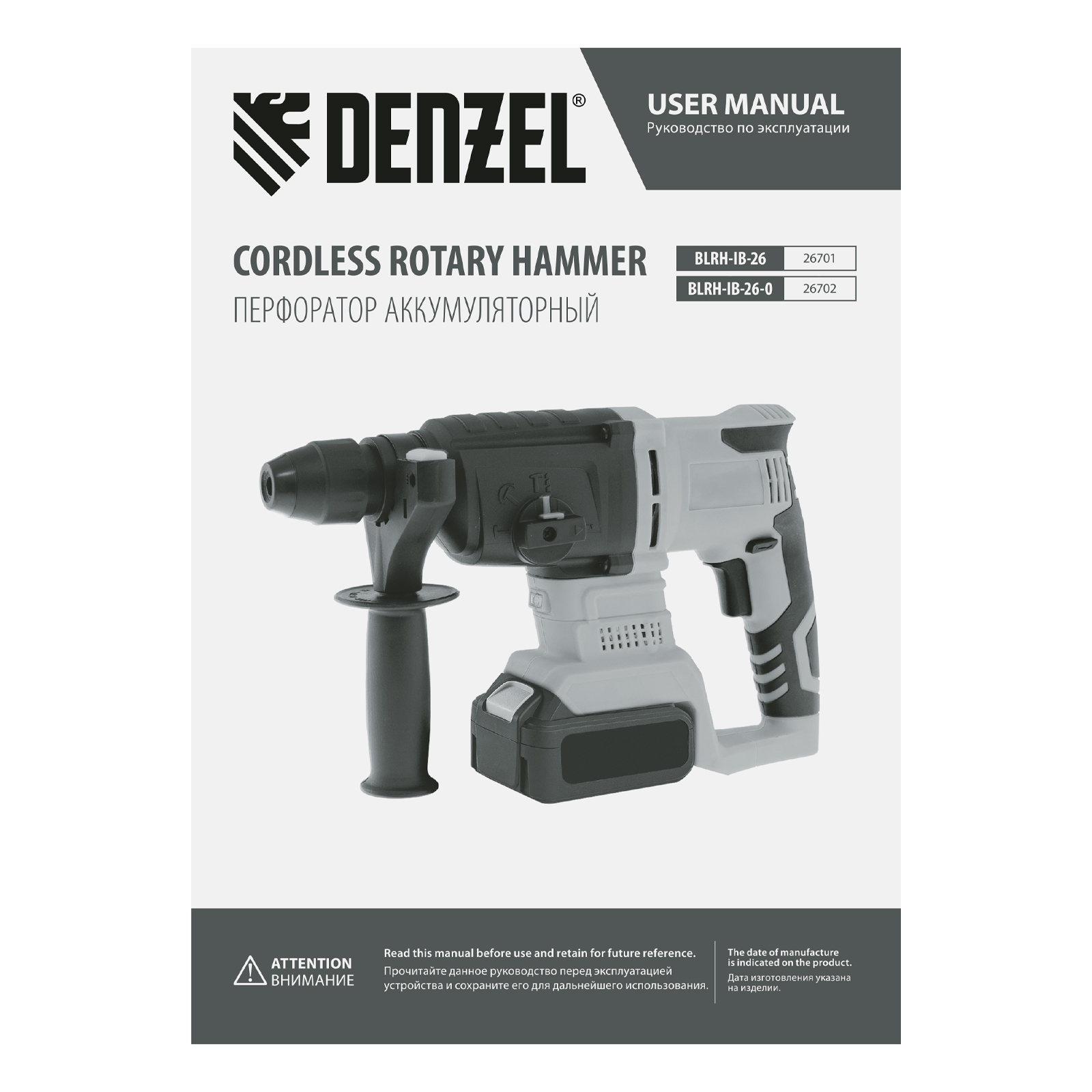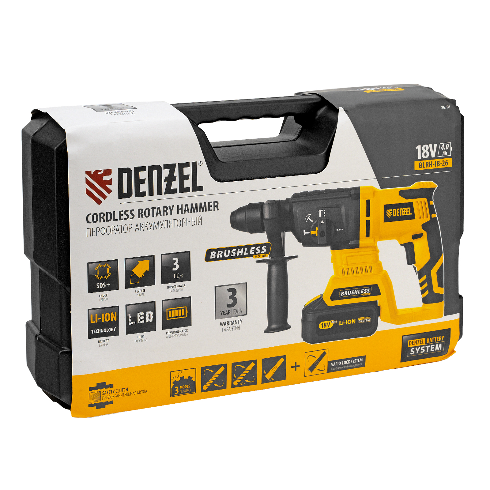 Перфоратор аккумуляторный BLRH-IB-26 Li-Ion, 18 В Denzel в Челябинске