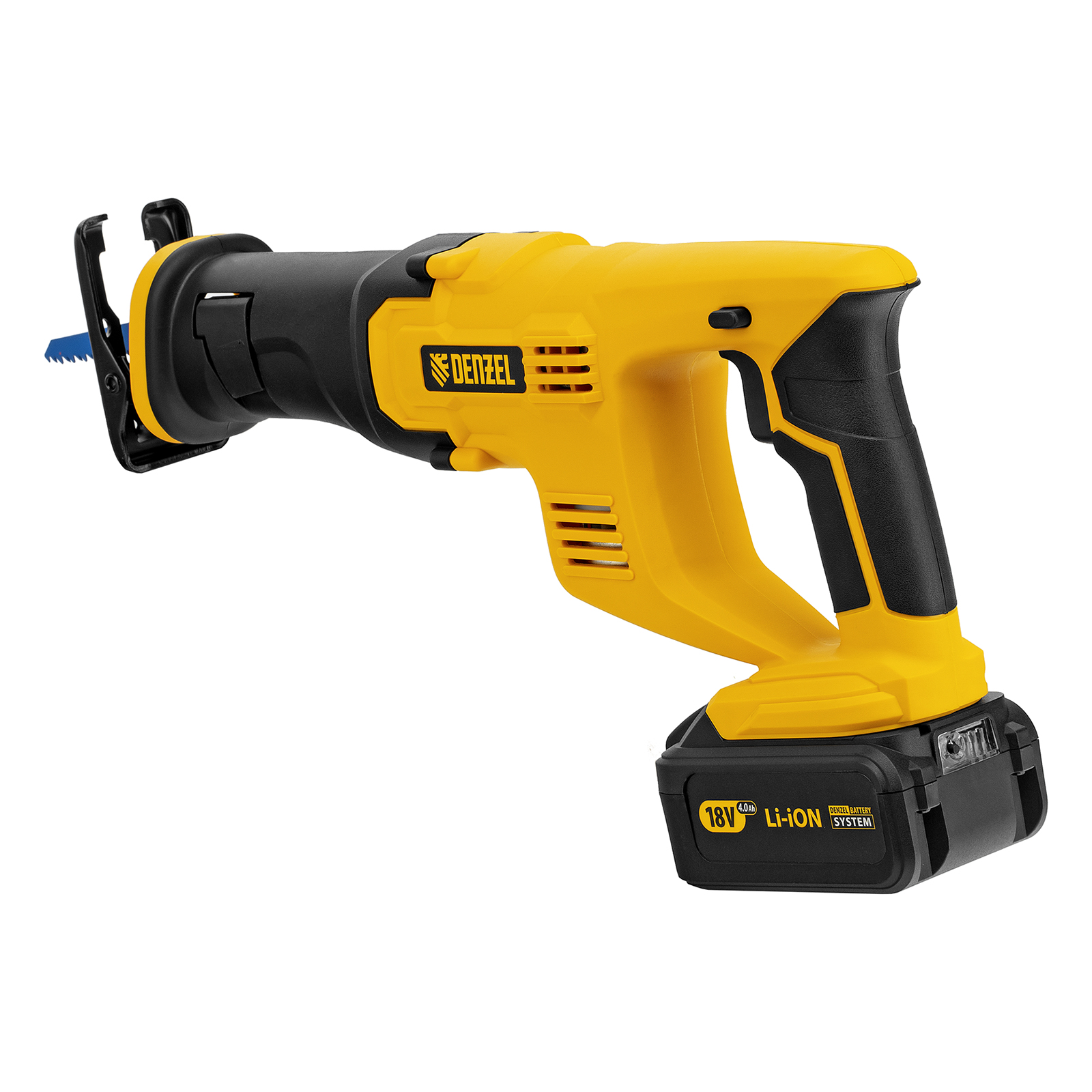 Сабельная аккумуляторная пила Denzel CRC-115 28465 работает от аккумулятора Li-Ion с рабочим напряжением 18 В. Предназначена для распила фанеры, досок, ДСП, ДВП, пластика, а также для обрезки веток. Максимальная глубина пропила в древесине составляет 115 мм, в стали — 10 мм. Оснастка совершает до 3000 ходов в минуту, что обеспечивает эффективную работу. ,Универсальный аккумулятор емкостью 4 А/ч, с интеллектуальной системой распознавания нагрузки, рассчитан на длительный срок службы. Он совместим со всеми инструментами единой платформы Denzel battery system 18V серии IB.