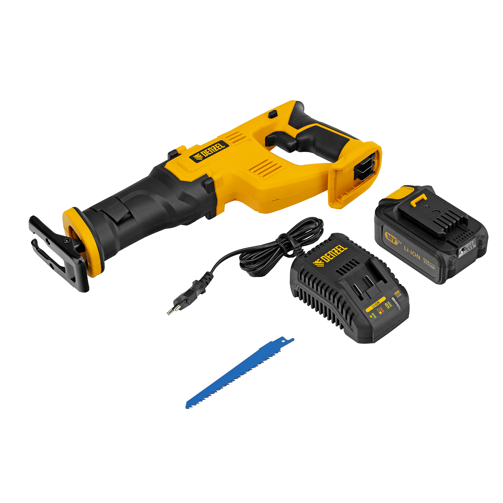 Сабельная пила - 1 штПильное полотно по дереву - 1 штБатарея аккумуляторная - 1 штЗарядное устройство - 1 штРуководство по эксплуатации с гарантийным талоном - 1 шт |