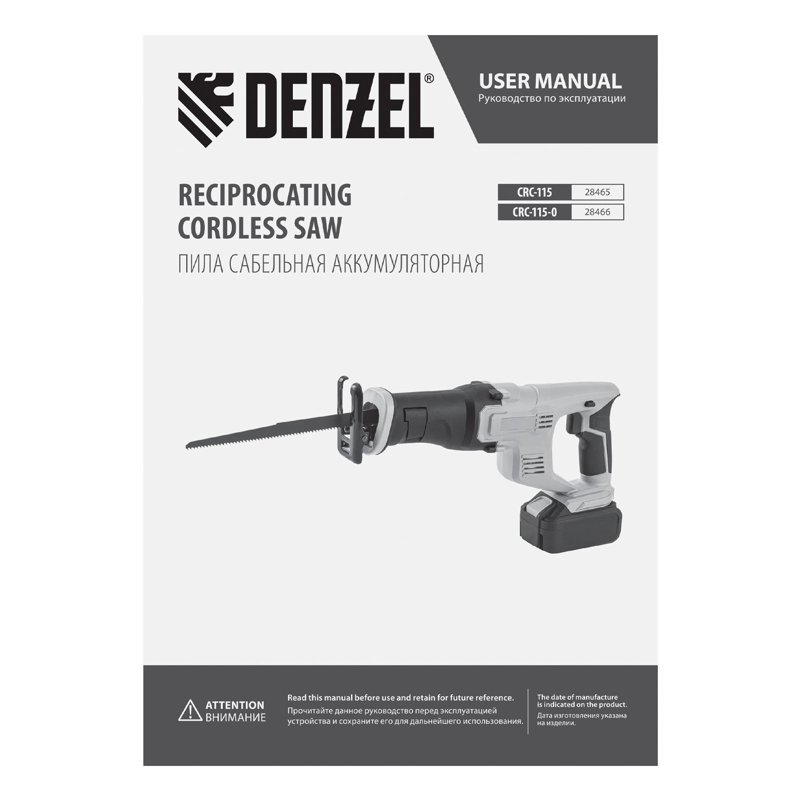 Пила сабельная аккумуляторная CRC-115, 18В Li-Ion Denzel в Челябинске