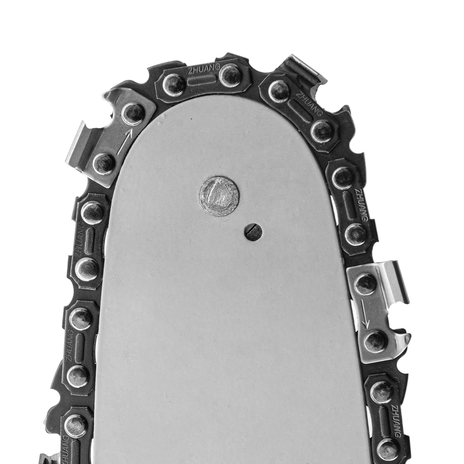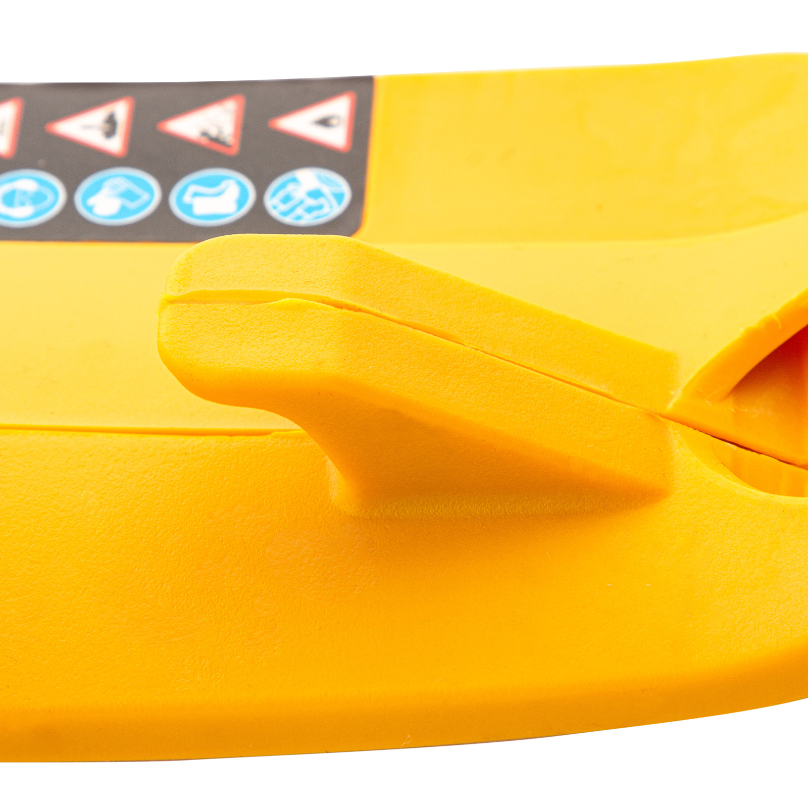 - Удобное использование — зубчатый упор не соскальзывает с древесины, надежно фиксируя пилу и уменьшая нагрузку на руки пользователя, что особенно удобно для работы с крупными бревнами или деревьями.