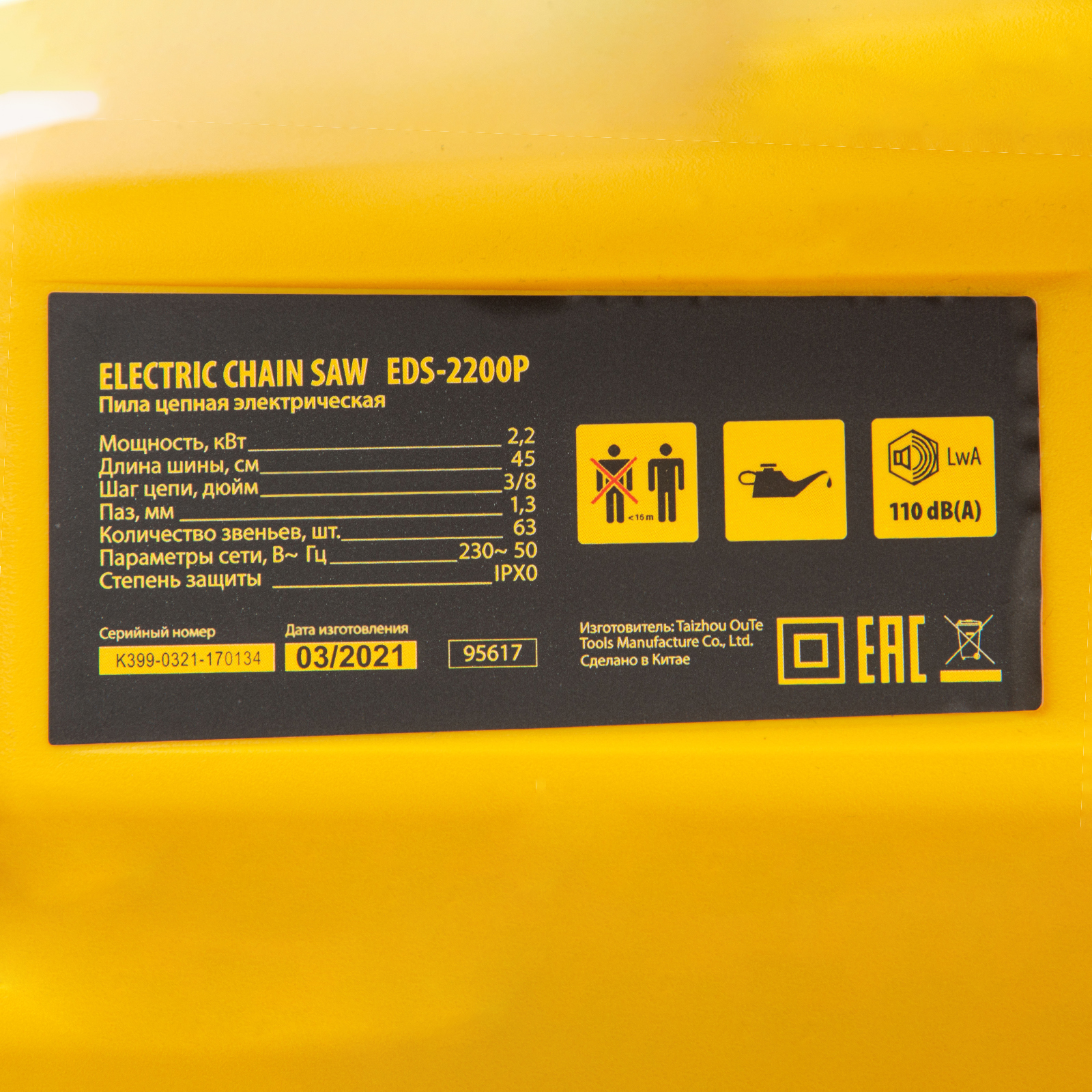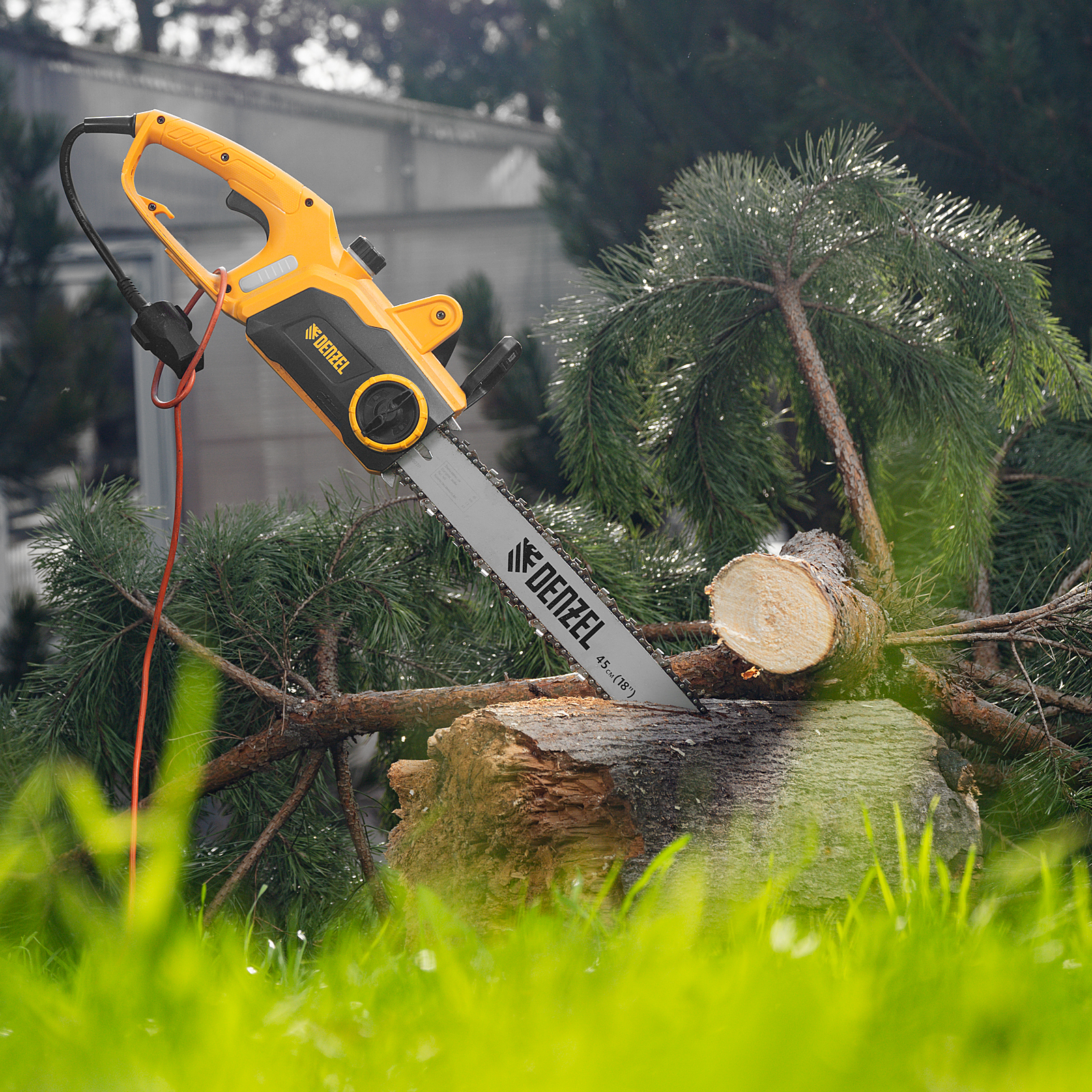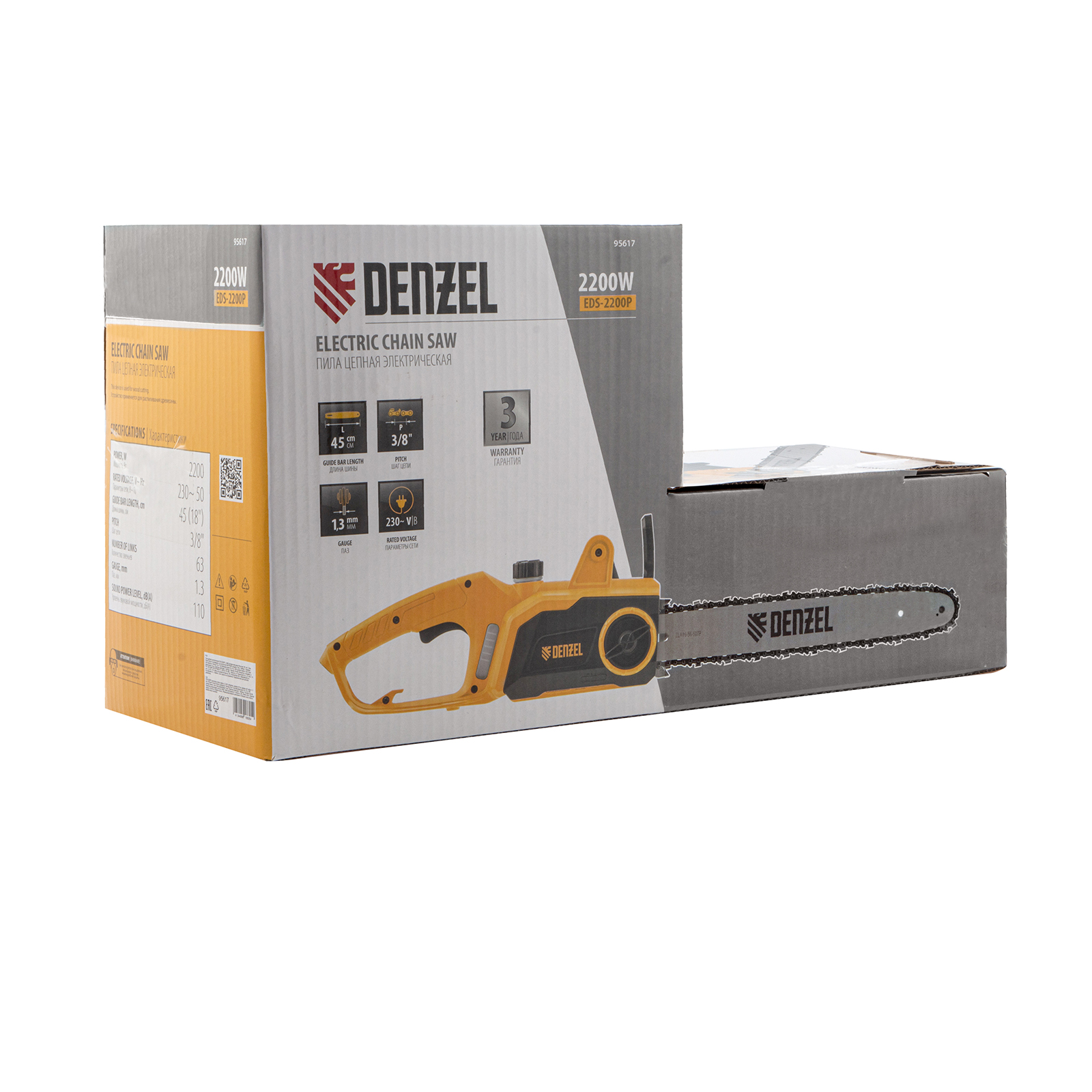 Пила цепная электрическая EDS-2200P, 2.2 кВт,поперечная, шина 45 см, шаг 3/8, паз 1.3 мм, 63 звена Denzel в Челябинске