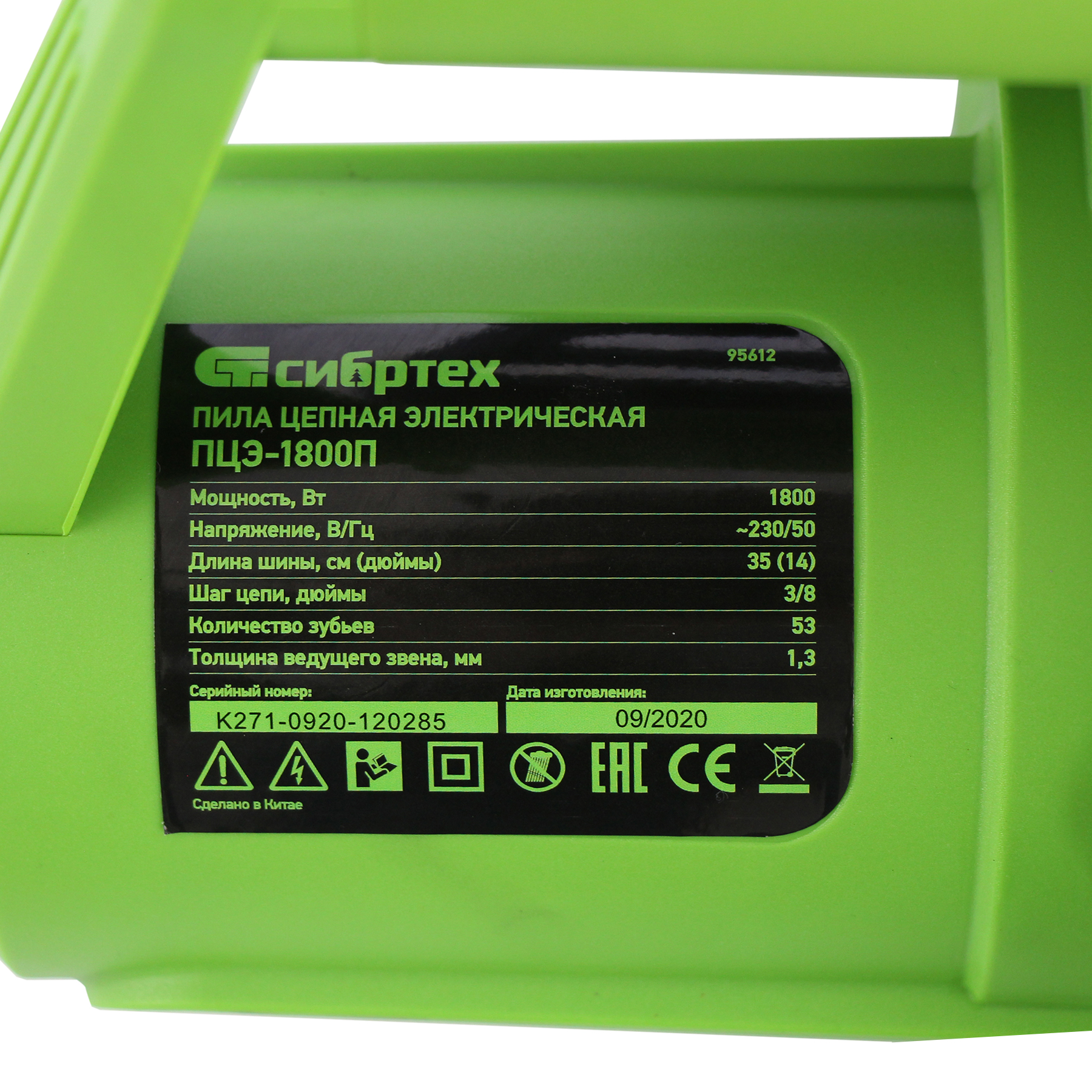 Пила цепная электрическая ПЦЭ-1800П с поперечным двигателем, 1.8 кВт, 14'' (35 см) Сибртех в Челябинске