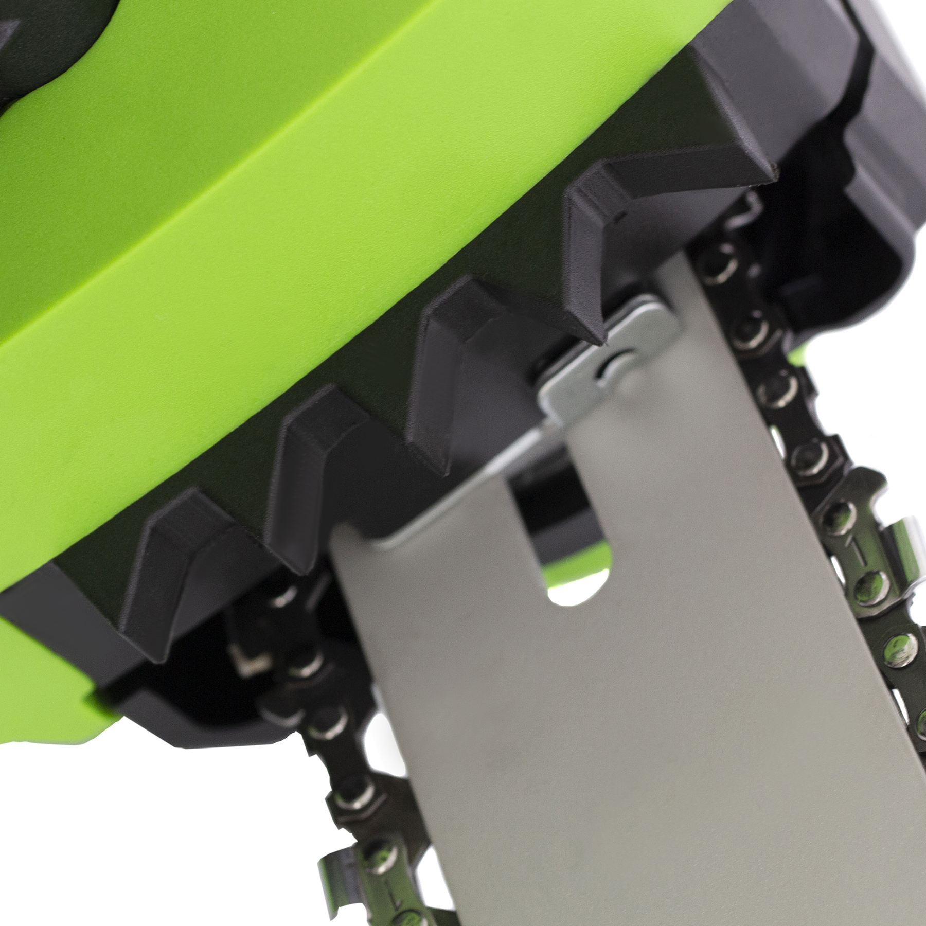 - Бесключевое натяжение цепи — достаточно одной рукой вращать регулировочный винт на боковой части корпуса.
