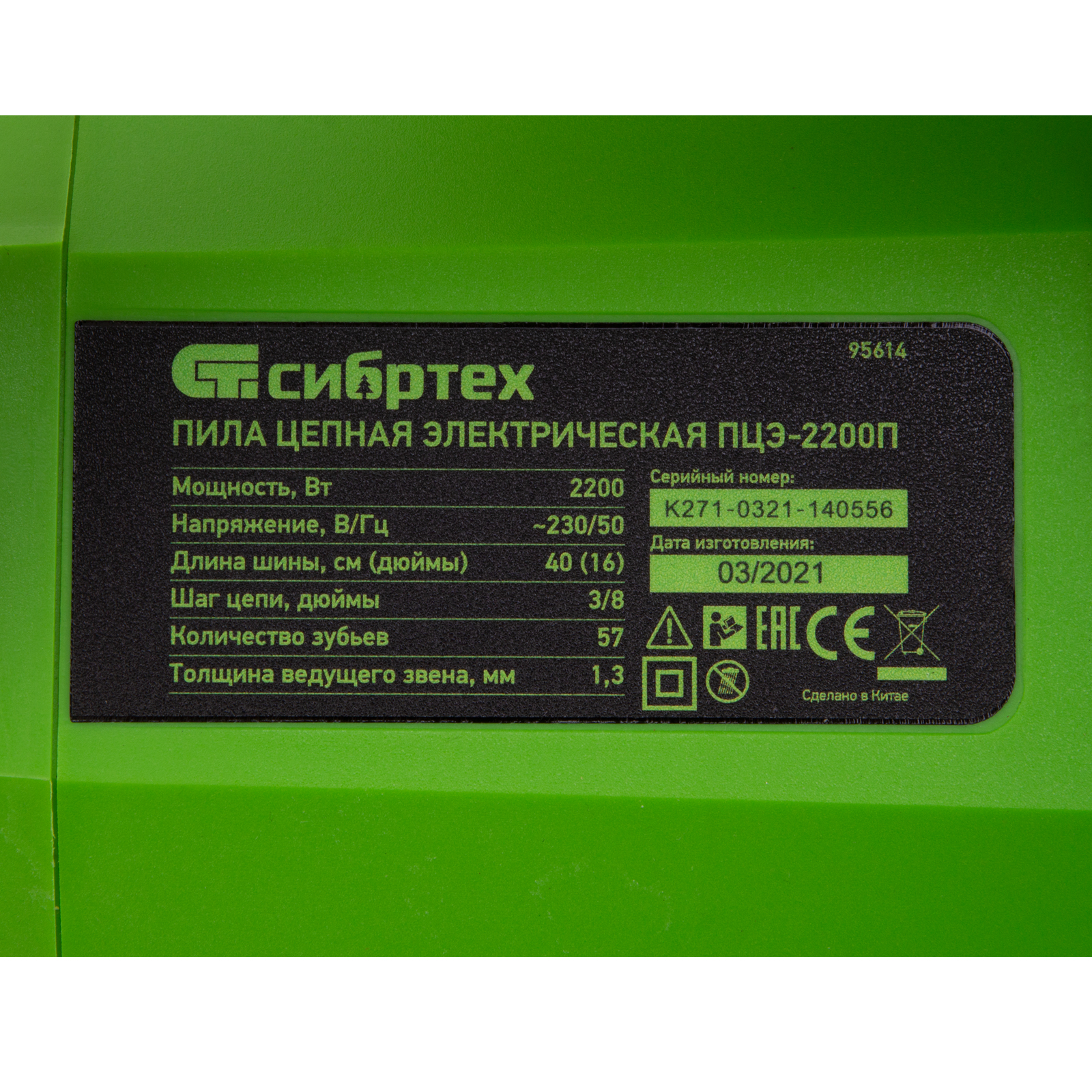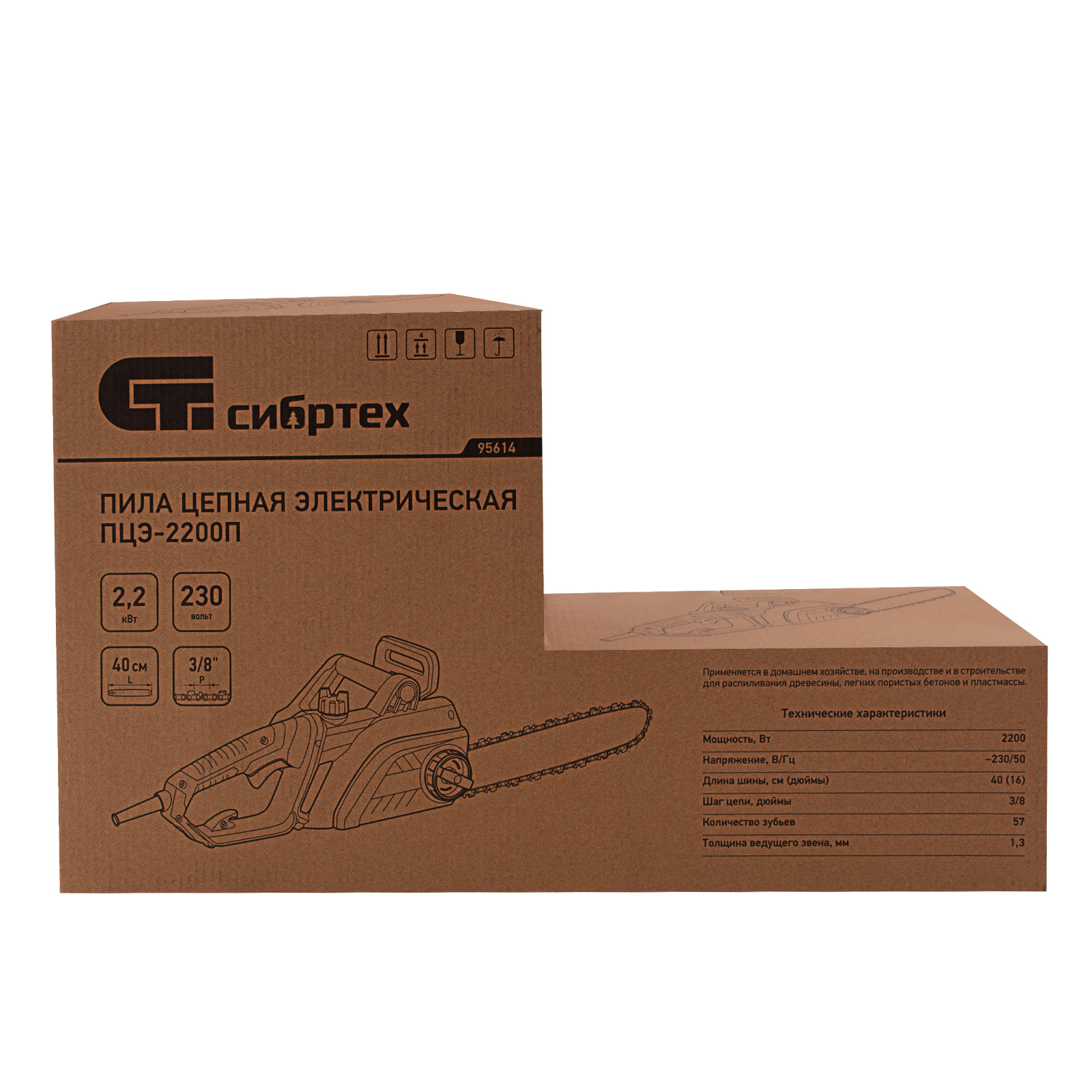 Пила цепная электрическая ПЦЭ-2200П с поперечным двигателем, 2.2 кВт, 16'' (40 см) Сибртех в Челябинске