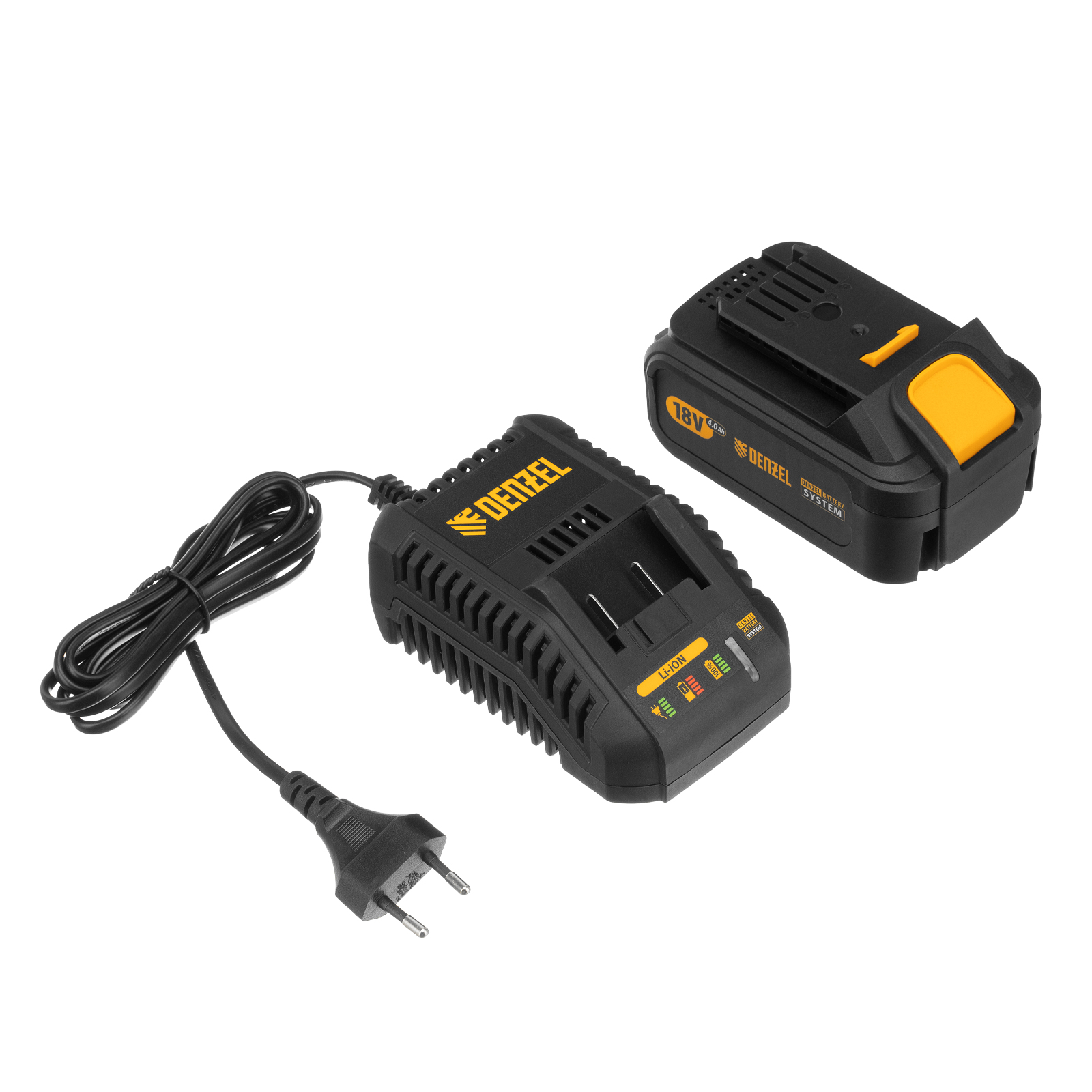 Аккумулятор Li-Ion емкостью 4 А·ч рассчитан на длительный срок службы и совместим со всеми инструментами, работающими на единой аккумуляторной платформе Denzel battery system 18V.