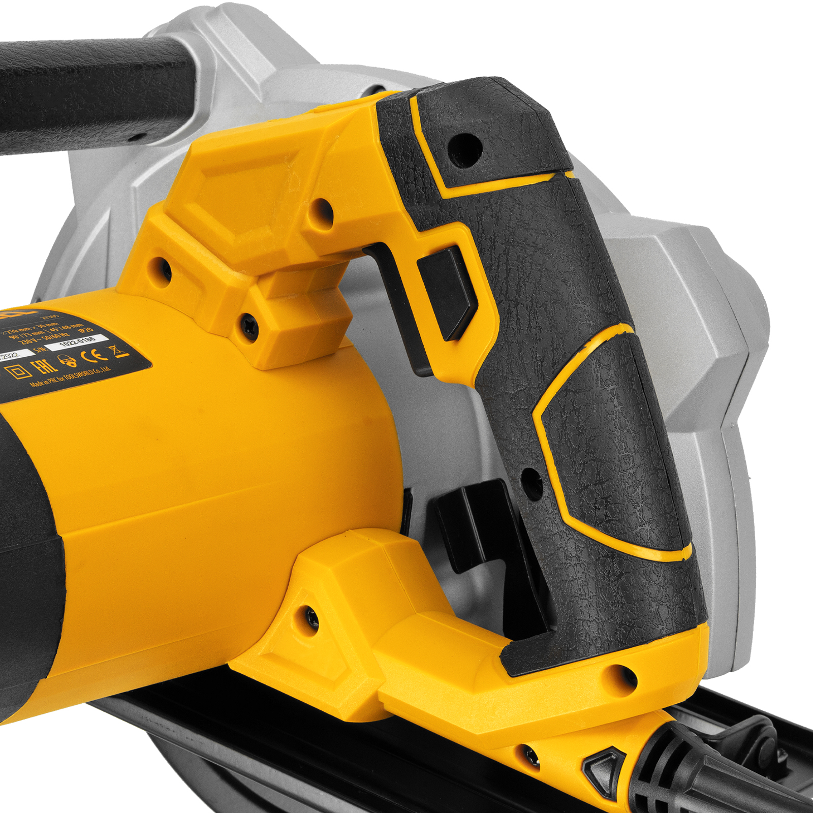 - Дополнительная рукоятка — инструмент удобно удерживать второй рукой, что минимизирует риск соприкосновения с пильным диском.