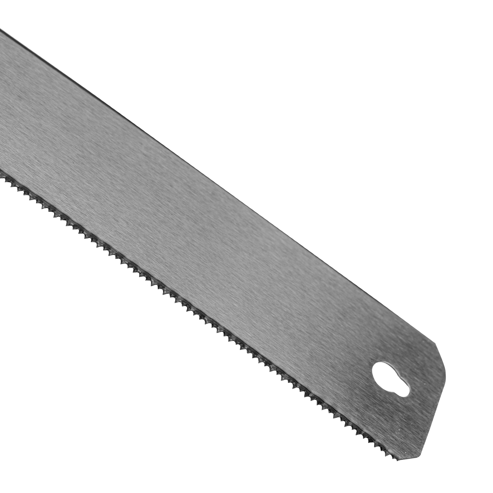 Пильное полотно Gross «PIRANHA» 22867 длиной 600 мм, с каленым зубом с 2D-заточкой, 14 TPI — режущий элемент для прецизионного стусла, применяемый для распила под углом заготовок из дерева, мягкого металла и пластика. Мелкие зубья с шагом 14 TPI позволяют получить точный и чистый рез. Полотно используется для пиления плинтусов, реек, дверных наличников и других деталей.