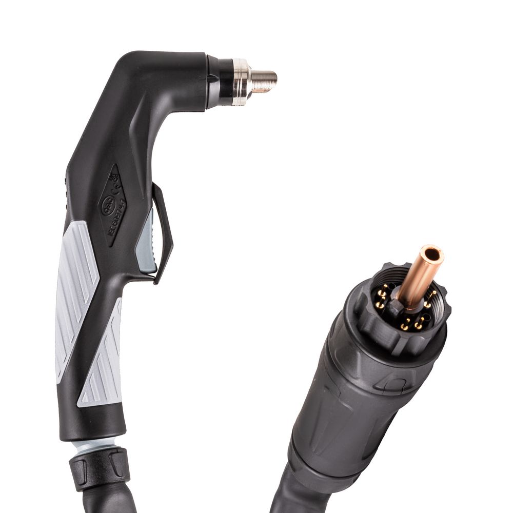Плазмотрон SAGGIO PS-65 с пневматическим поджигом предназначен для полуавтоматической (ручной) воздушно-плазменной разделки металлических деталей и конструкций. Подключается к аппаратам воздушно-плазменной резки (Plasma CUT) через центральный адаптер. Плазмотрон комплектуется кабель-шлангом длиной 6 метров.ПНЕВМОКОНТАКТНЫЙ ПОДЖИГ: Благодаря совсем небольшому расстоянию между подвижным электродом и соплом пневматический поджиг гарантирует отсутствие электромагнитных помех, влияющих на работу электроники и станков с ЧПУ. Кроме того, данный тип поджига обеспечивает отличное качество реза.ТОЛЩИНА РЕЗА ДО 20 ММ: Благодаря высоким динамическим характеристикам дуги и стабильному току резки с помощью этой модели плазмотрона можно разрезать металл толщиной до 20 мм.ПРЕДОХРАНИТЕЛЬ КУРКА: Специальный предохранитель исключает случайное нажатие, препятствуя незапланированному включению плазмотрона, и повышает безопасность работы.ШАРНИРНОЕ СОЕДИНЕНИЕ: Шарнир между рукояткой плазмотрона и рукавом уменьшает нагрузку на руку и запястье, что даёт мобильность, гибкость, удобство вращения, и делает процесс сварки более удобным.ЭРГОНОМИЧНОСТЬ: Благодаря продуманному контурному дизайну, разработанному специально для удобного хвата, рукоятка плазмотрона идеально лежит в руке.ПРЕИМУЩЕСТВА:Отсутствует риск расплавления или выгорания изолятораНет прямого контакта между изолятором и поршнемИзолятор удален от источника теплаНадёжное кабельное соединениеУвеличенная площадь рассеивания тепла и оптимизированный воздушный потокОптимизированный поток воздуха отводит больше тепла от головки резака и, таким образом, увеличивает срок службы расходных материаловФУНКЦИОНАЛЬНЫЕ ОСОБЕННОСТИ:ДЕЖУРНАЯ ДУГА: Дежурная дуга плазмотрона (PILOT ARC) – это первичная дуга между электродом и соплом, которая направляется за счёт сжатого воздуха к поверхности. В момент контакта с разрезаемым материалом дежурная дуга гаснет и загорается режущая дуга, что обеспечивает «доступ» режущей дуги к основному материалу. Благодаря этому плазменная струя не гаснет даже на металлической сетке.БЕЗОПАСНОСТЬ РАБОЧЕГО ПРОЦЕССА: Плазменная резка намного безопаснее и экологичнее газовой резки. Источник питания, плазмотрон и компрессор (иногда встроенный в аппарат) – вот всё, что нужно для начала работы. Отсутствие взрывоопасности (никаких баллонов с газом) и загрязнения окружающей среды из-за метода сжигания топлива выгодно отличает плазменную резку от газовой.КОМПЛЕКТАЦИЯ: Плазмотрон SAGGIO PS-65 6М – 1 шт.; Двусторонняя прокладка – 1 шт.; Стопорный колпачок – 1 шт.; Плоский режущий наконечник – 1 шт.; Электрод – 1 шт.