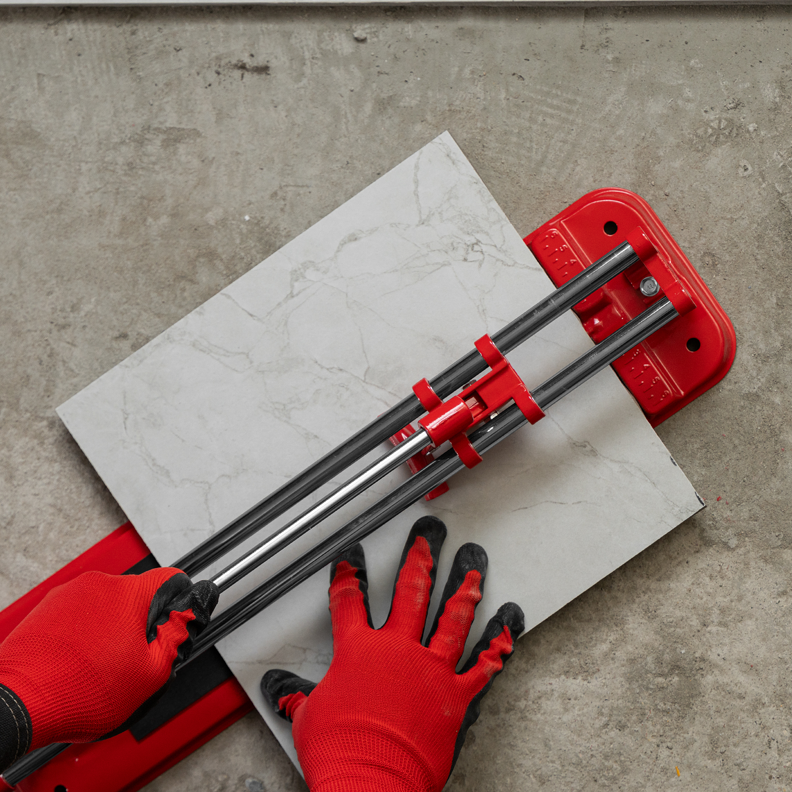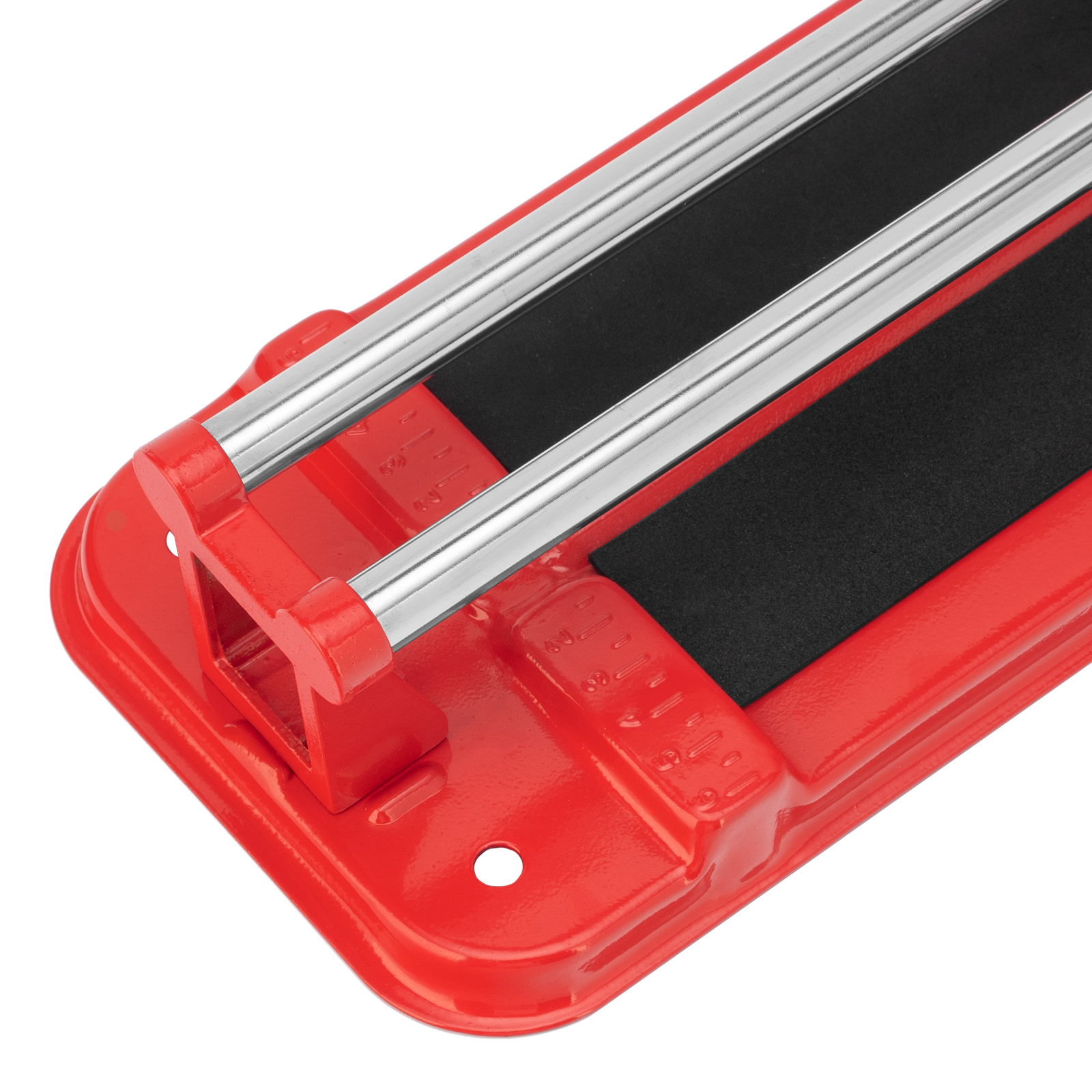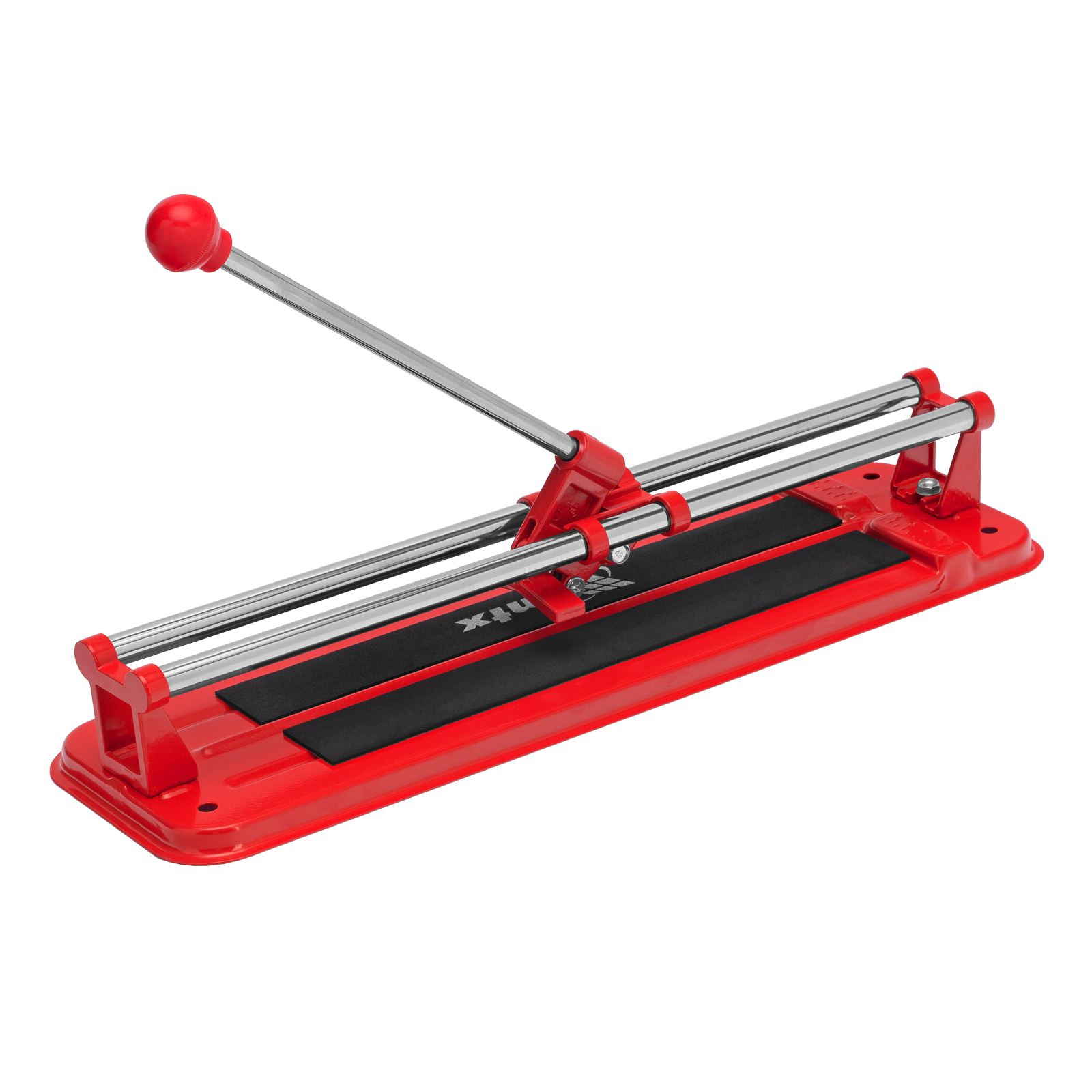- Высокое качество работы — стальное основание обеспечивает устойчивость плиткореза, мягкие амортизирующие накладки предотвращают смещение плитки.