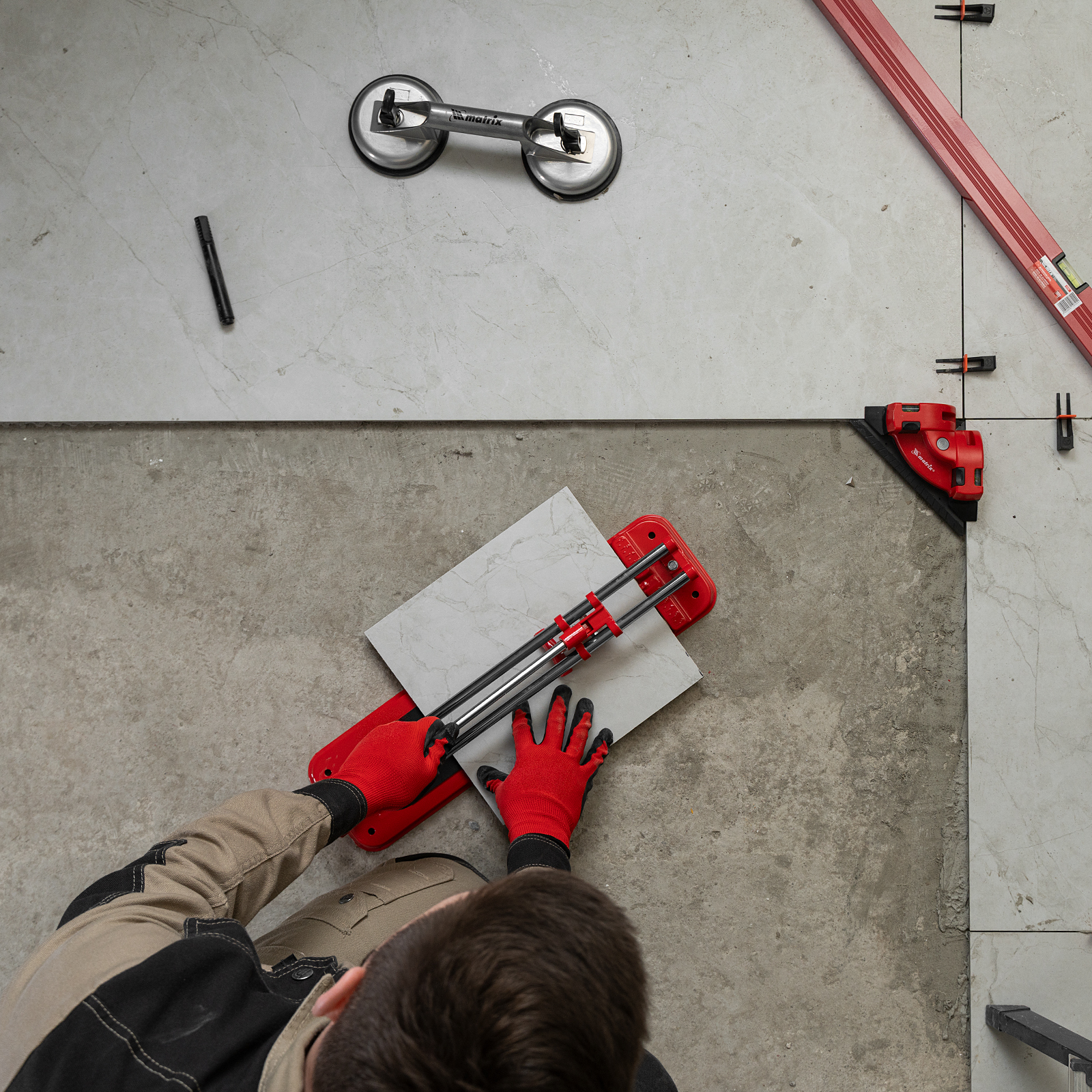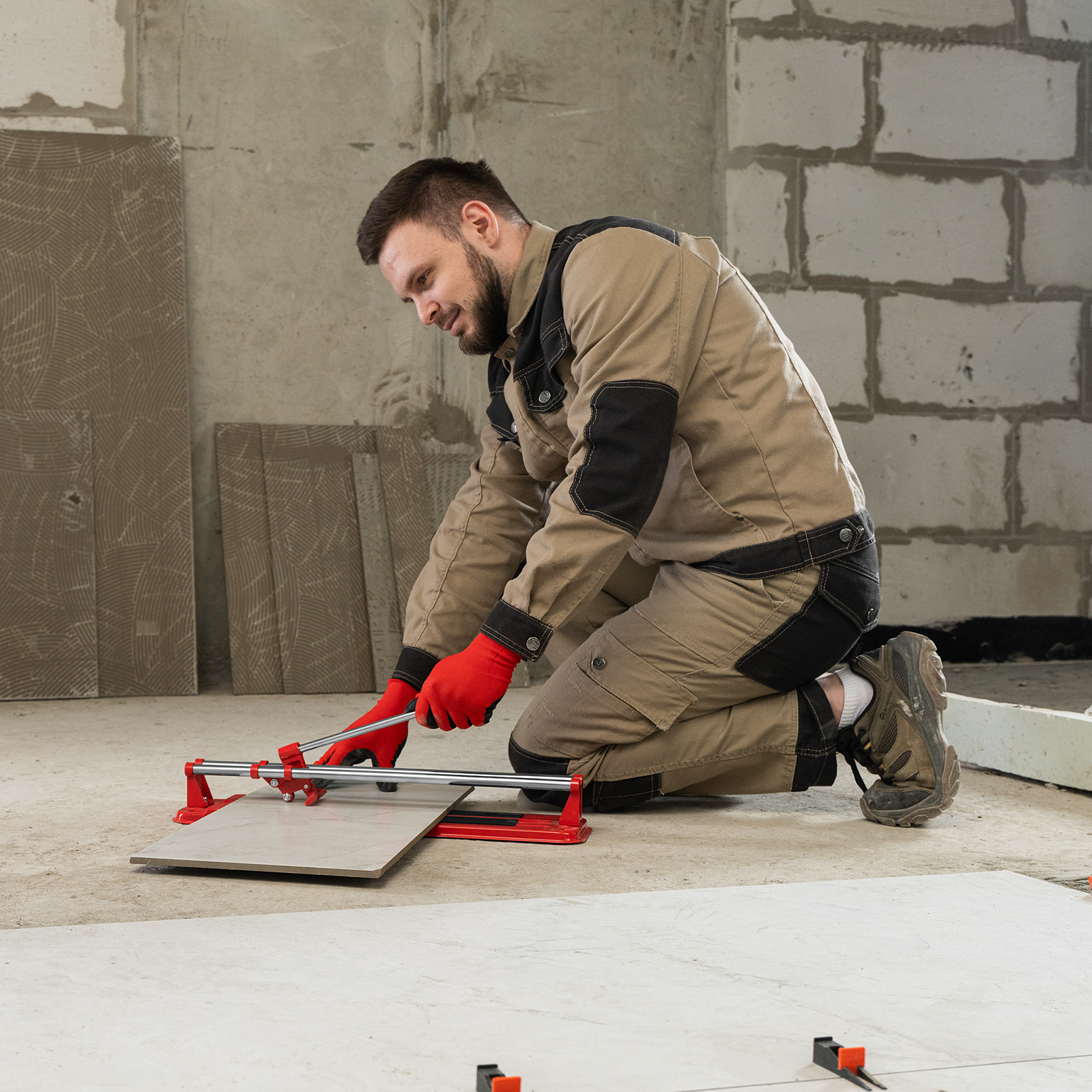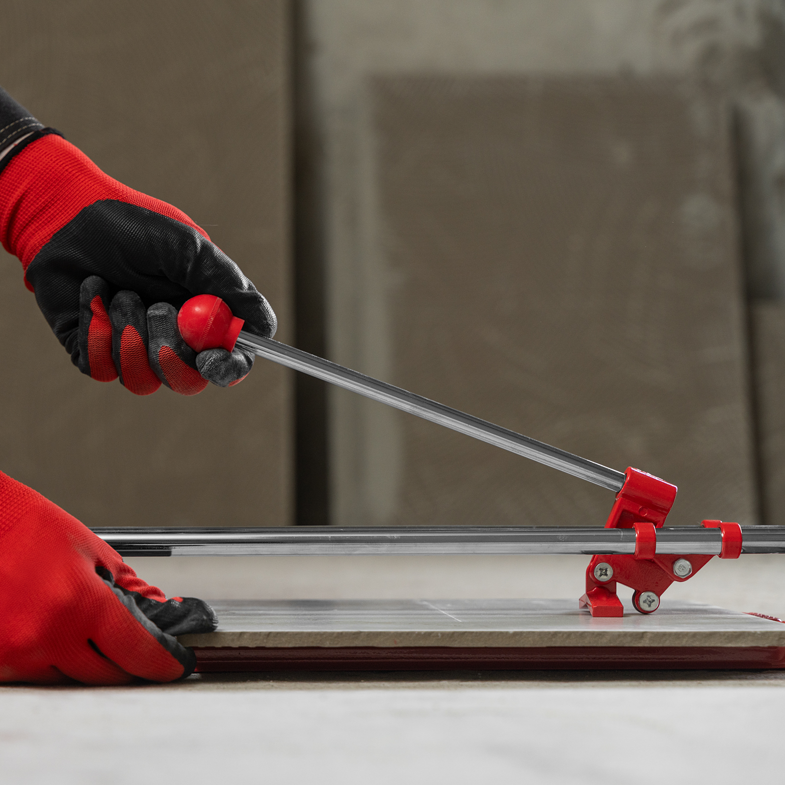 - Высокое качество работы — стальное основание обеспечивает устойчивость плиткореза, мягкие амортизирующие накладки предотвращают смещение плитки.