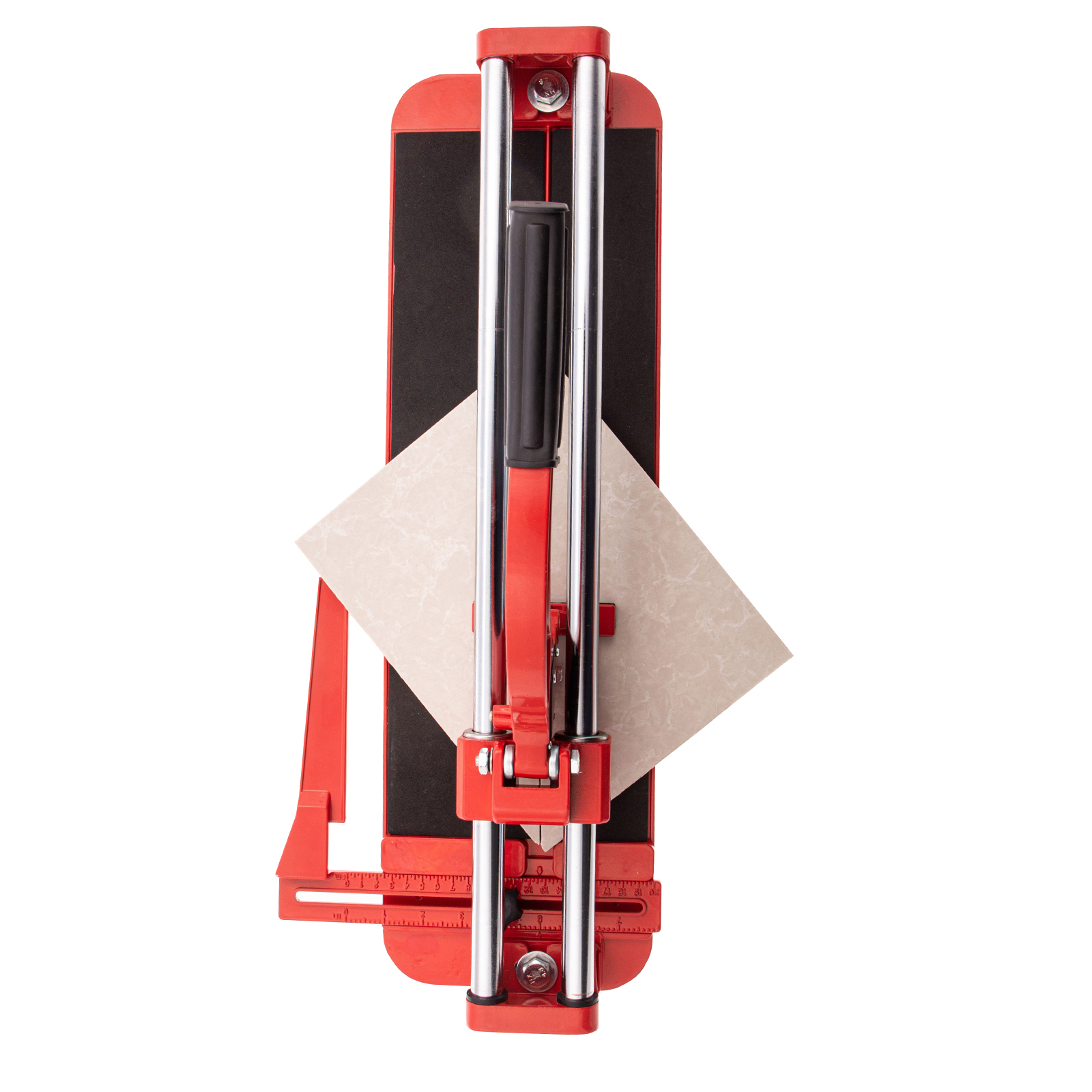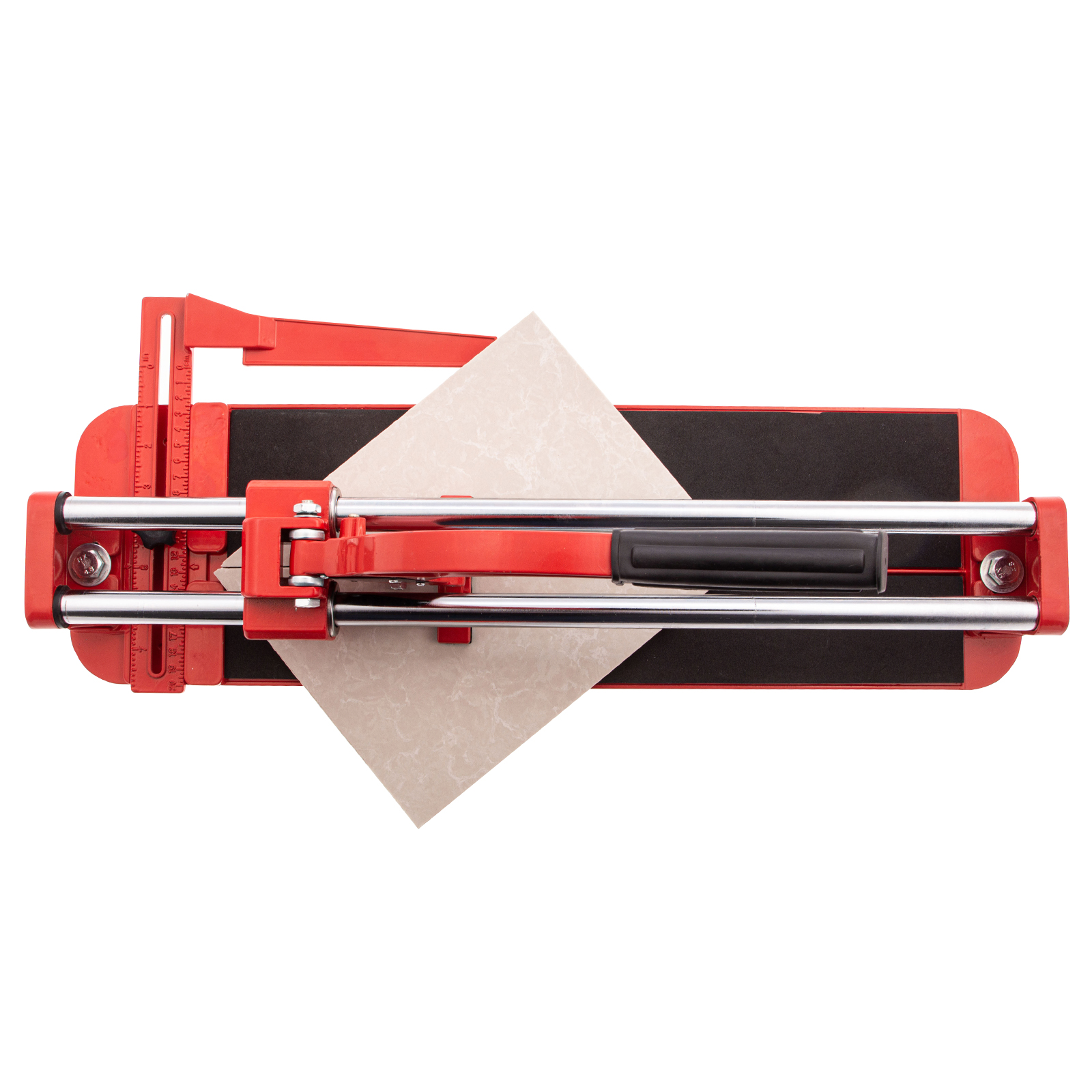 - Устойчивое основание и неподвижность плитки — плиткорез снабжен цельнолитой станиной из алюминиево-магниевого сплава с обрезиненной поверхностью, а также мягкими амортизирующими накладками.
