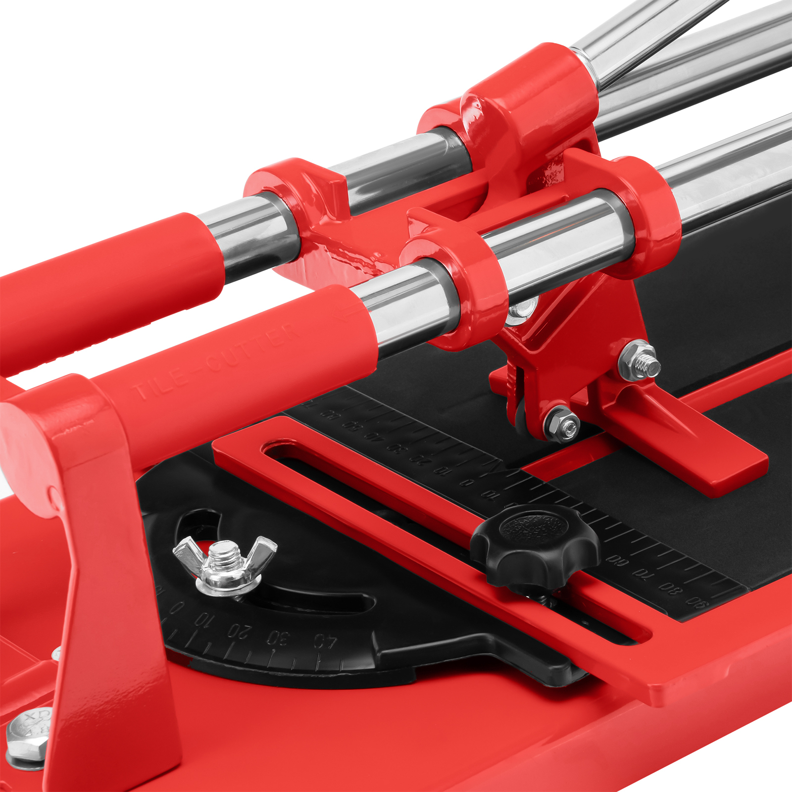 - Высокая точность выполняемых работ — поворотный угольник-угломер позволяет резать плитку под углом до 45°.