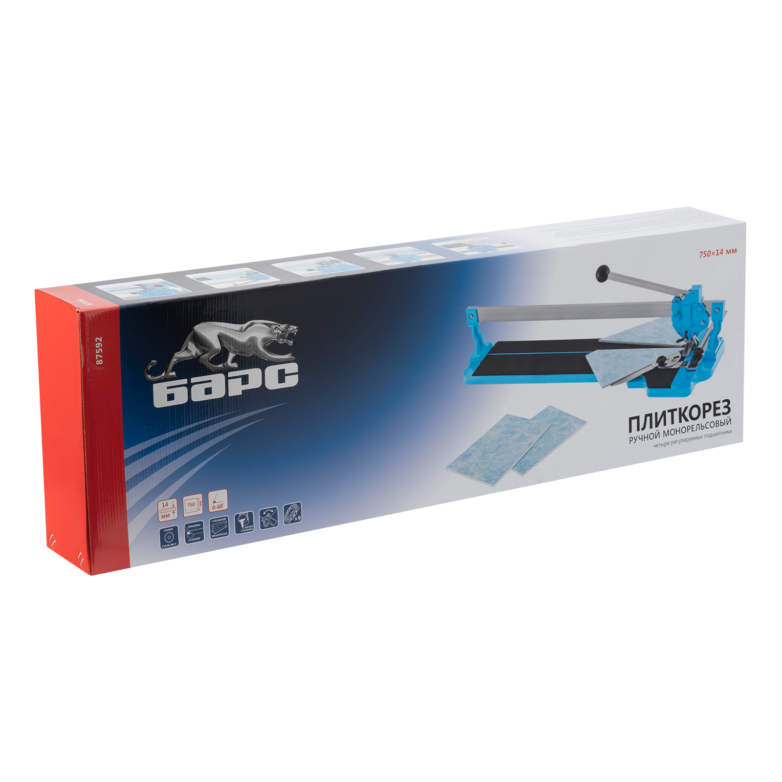 Плиткорез ручной монорельсовый 750 х 14 мм, ходовая каретка, 9/4 регулировка подшипников, литая станина Барс в Челябинске
