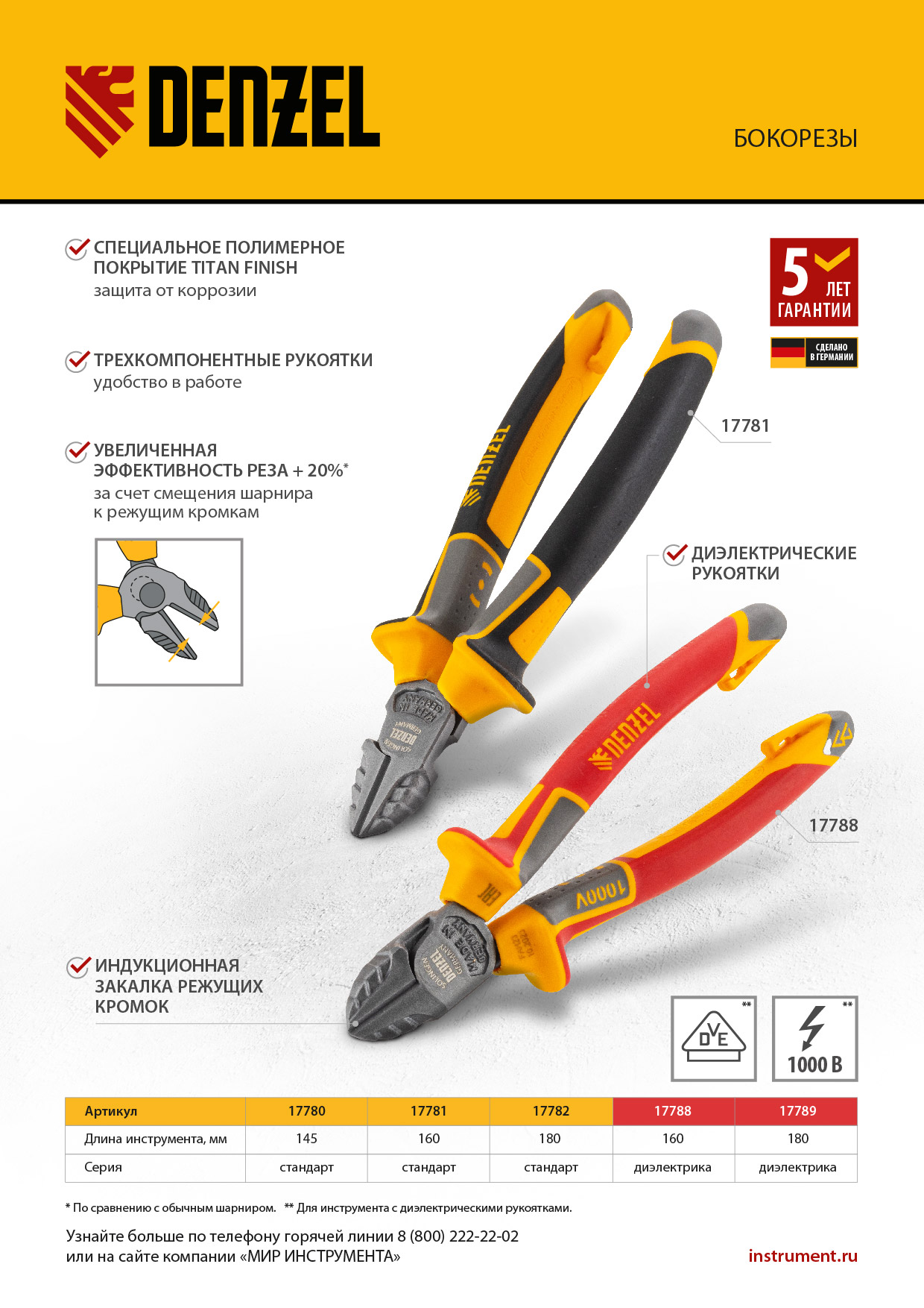 Плоскогубцы комбинированные 180 мм, трехкомпонентные рукоятки Denzel в Челябинске