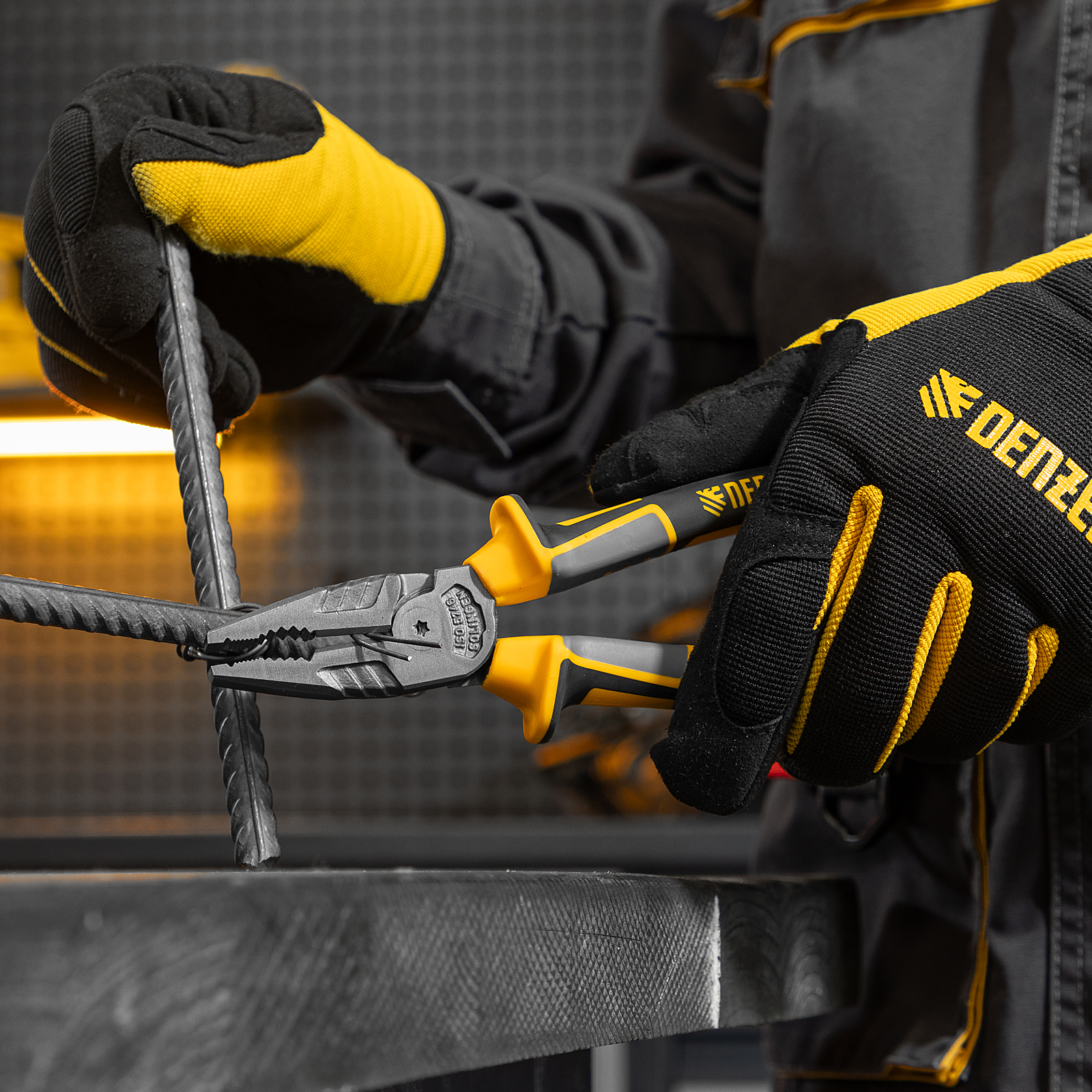 Комбинированные плоскогубцы Denzel 17082 длиной 205 мм, с трехкомпонентными рукоятками, используются для зажима и удержания деталей, сгибания металлических листов. Позволяют также перекусывать мягкую проволоку (алюминиевую, медную, с пределом прочности 220 Н/мм2) диаметром до 5,9 мм, проволоку средней жесткости и гвозди (750 Н/мм2) диаметром до 3,8 мм, а также жесткую (1800 Н/мм2) толщиной до 2,5 мм. Имеют внутренние грани специальной формы, предназначенные для использования инструмента в качестве гаечного ключа. Губки с насечками надежно удерживают заготовки. Плоскогубцы пригодятся профессионалу и частному мастеру при проведении слесарных, ремонтных и сборочных работ.