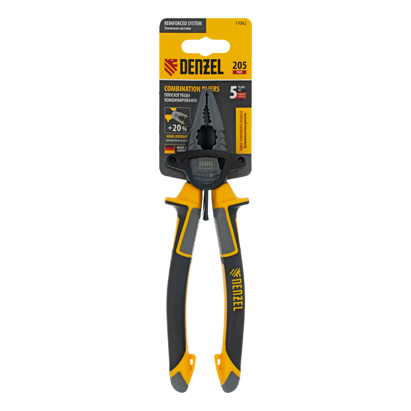 Плоскогубцы комбинированные 205 мм, трехкомпонентные рукоятки Denzel в Челябинске