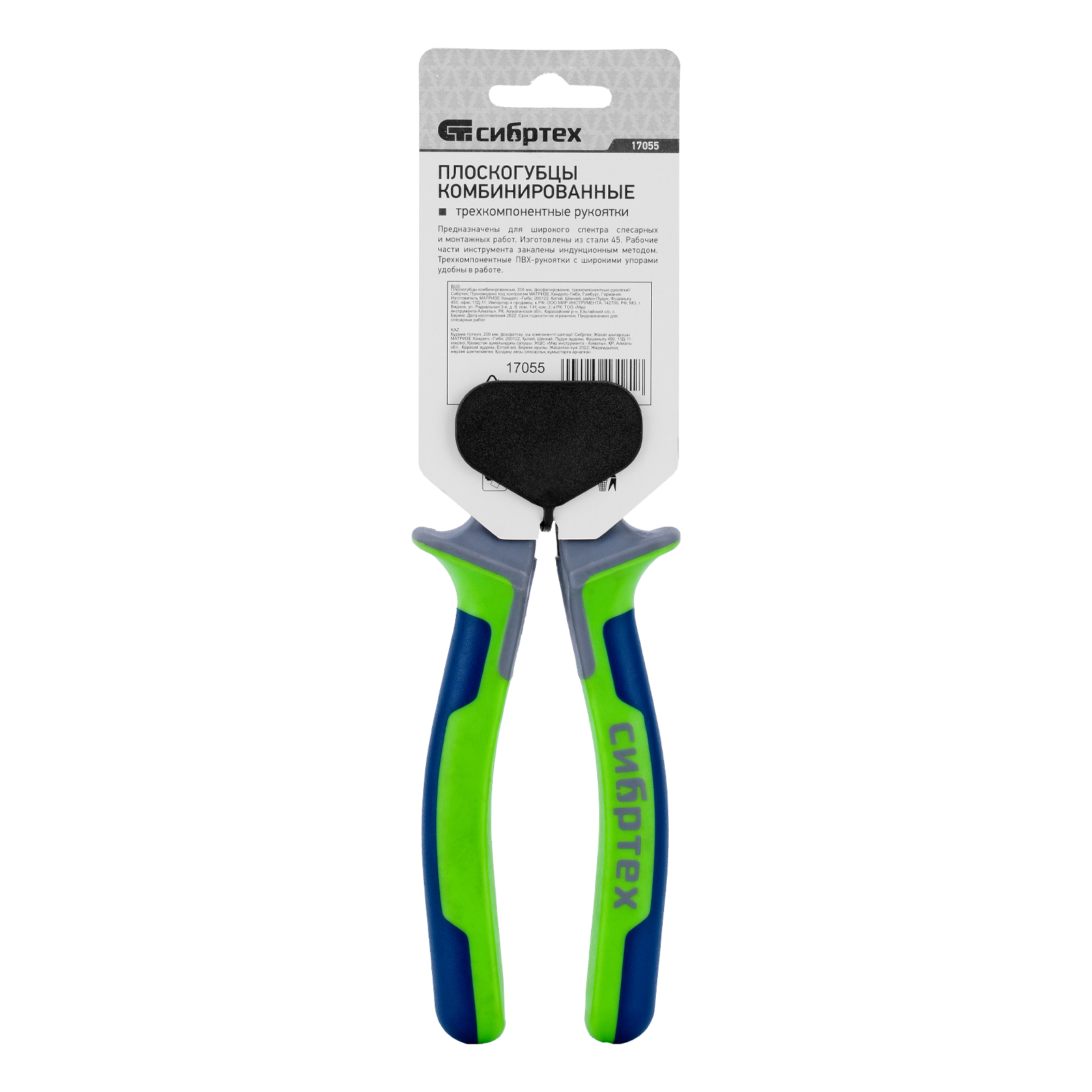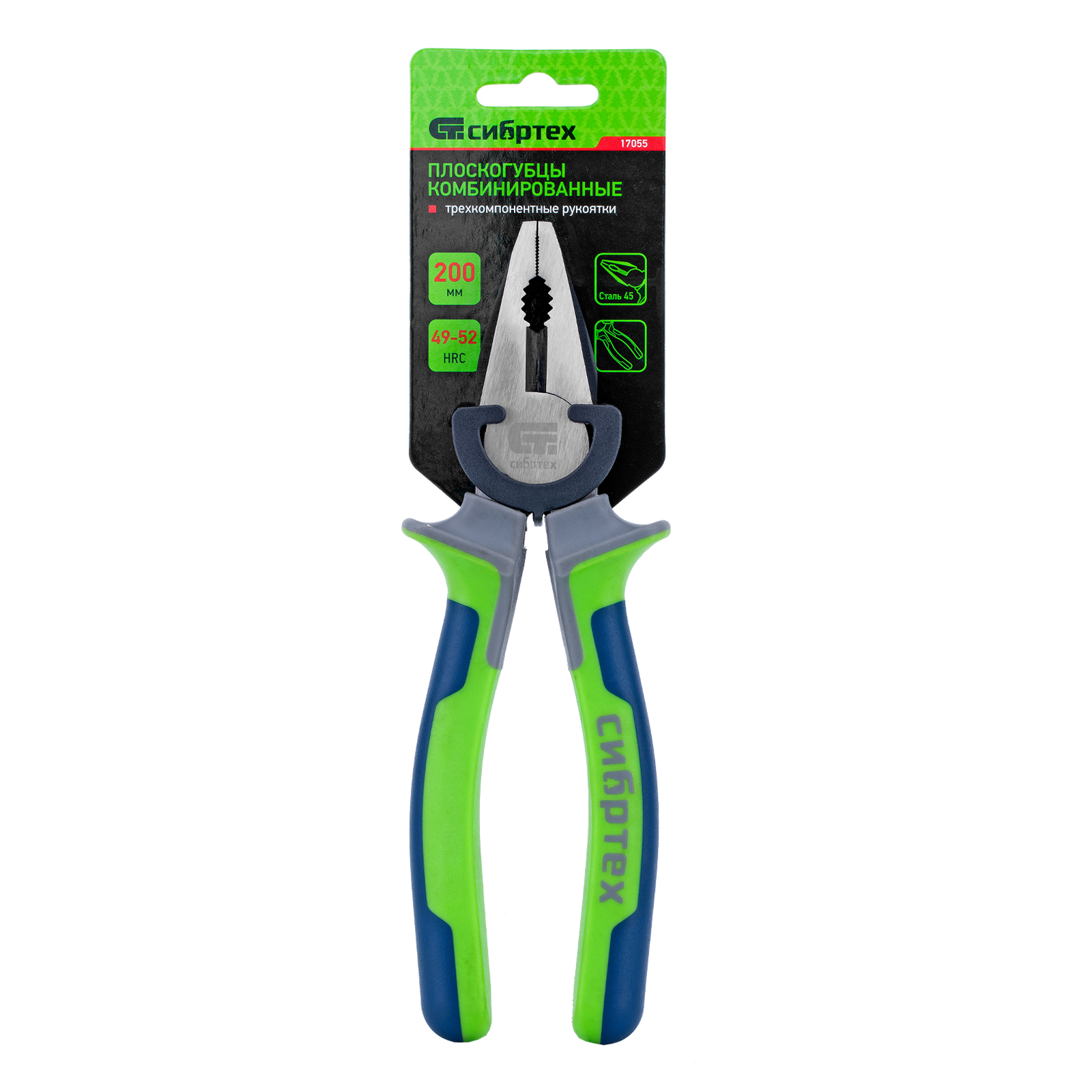 Плоскогубцы комбинированные, 200 мм, фосфатирование, трехкомпонентные рукоятки Сибртех в Челябинске