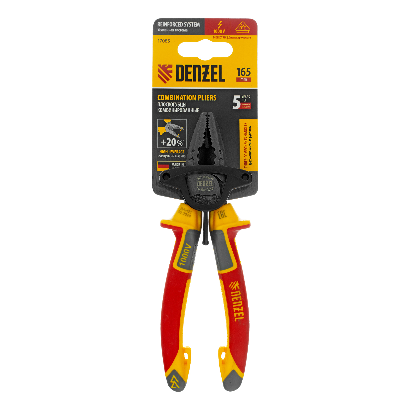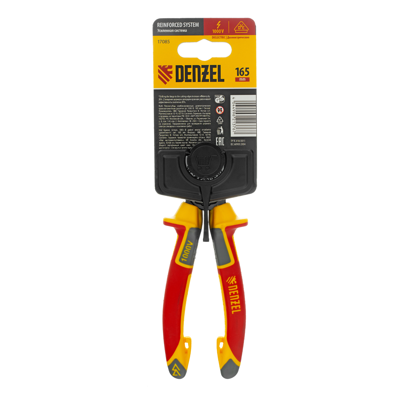 Плоскогубцы комбинированные, диэлектрические трехкомпонентные рукоятки до 1000 В, 165 мм Denzel в Челябинске