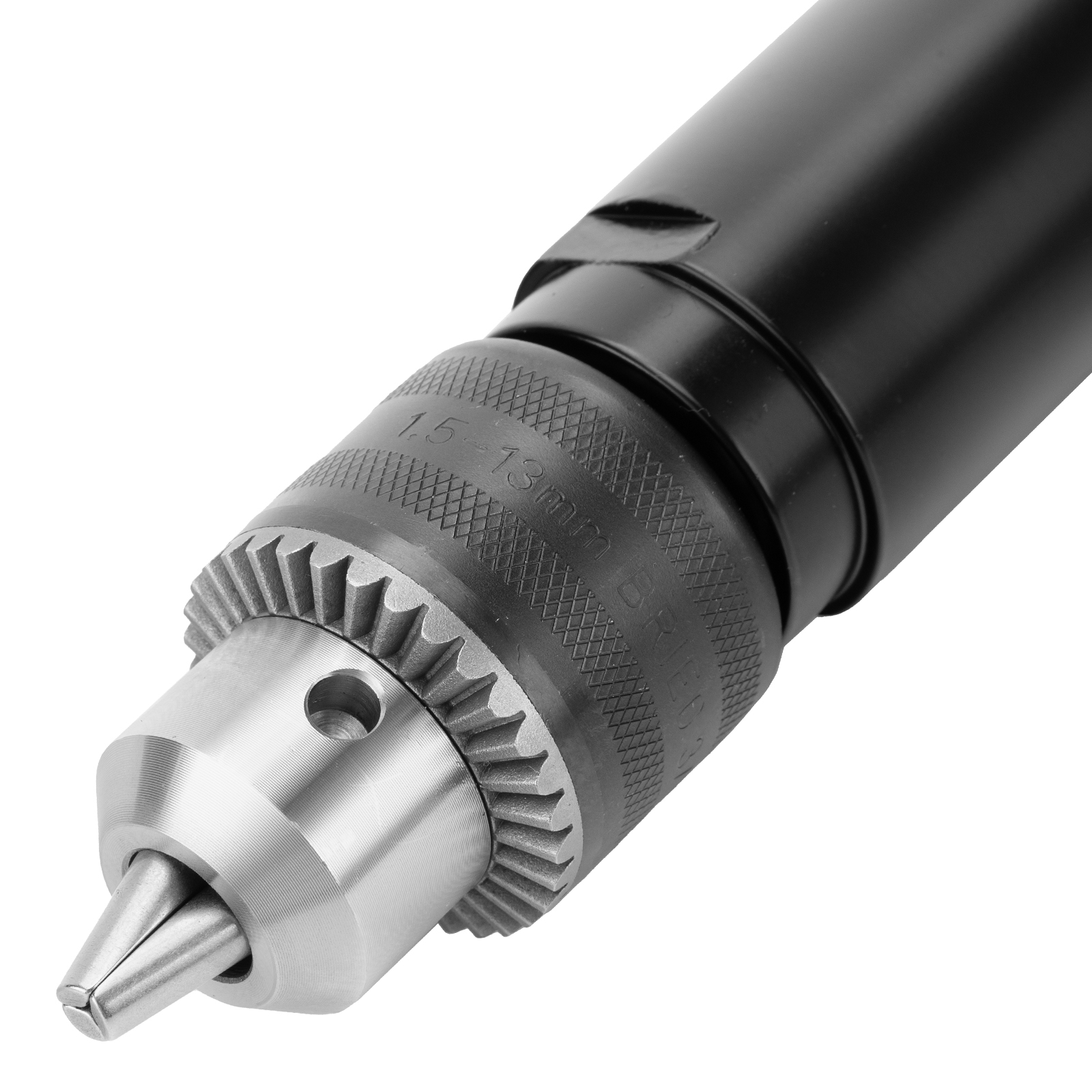 - Надежная фиксация оснастки — кулачковый ключевой патрон обеспечивает прочное крепление сверл диаметром 1,5-13 мм.