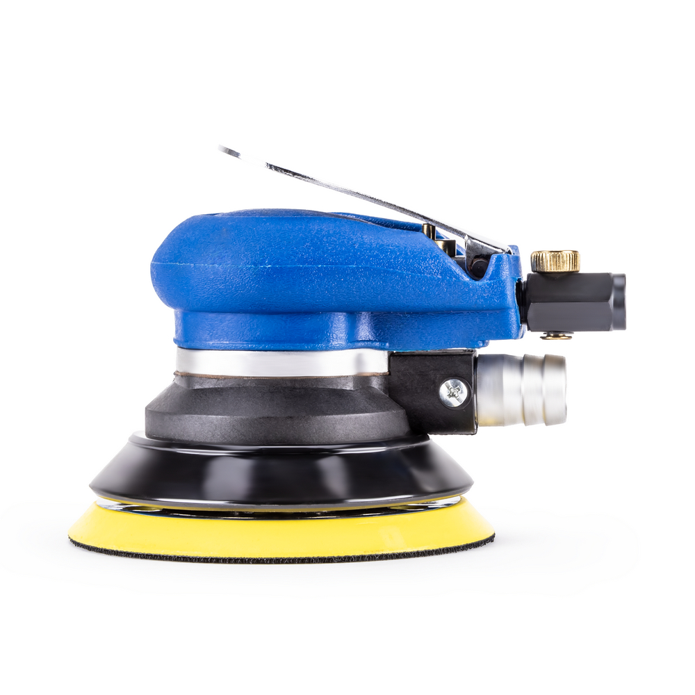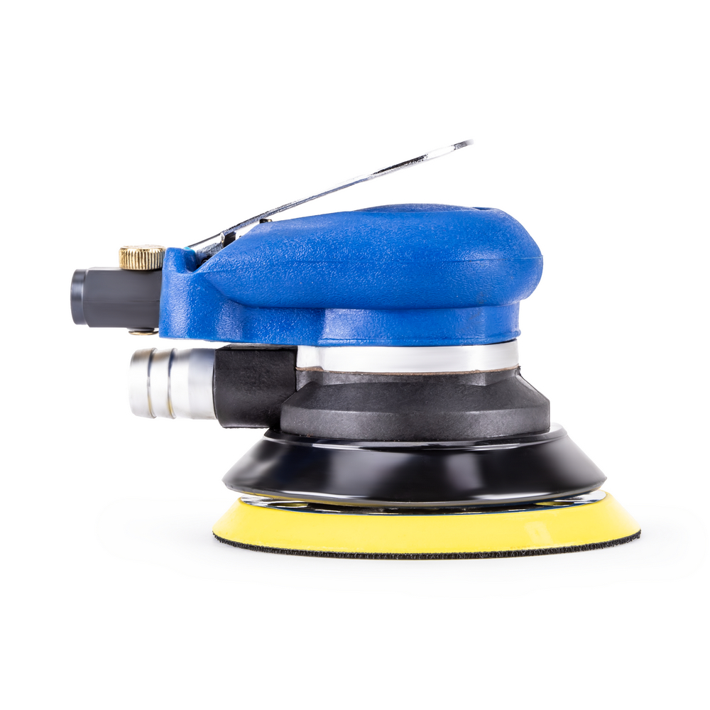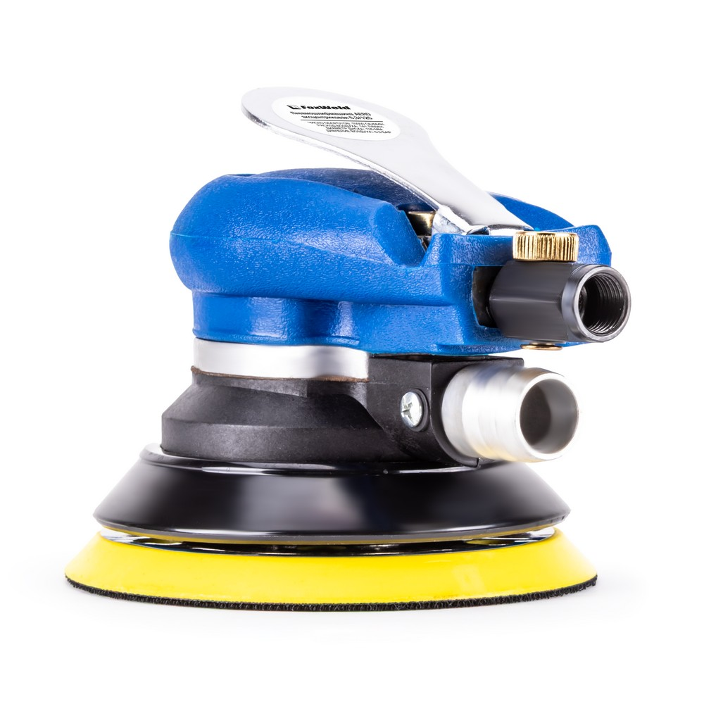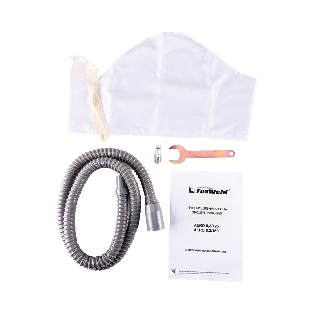 Пневматическая эксцентриковая шлифовальная машина или пневмошлифмашина AERO 6,3/125 предназначена для качественной обработки поверхностей (дерево, пластмасса или металл), перед покраской или покрытием лаком. Шлифмашина позволяет быстро очищать, как выпуклые, так и плоские поверхности, исключая появление царапин и обеспечивая равномерность обработки. Изделие имеет регулировку скорости воздушного потока что весьма удобно при обработке поверхностей из различного материала и работе с кругами с разным типом зернистости. Рабочим инструментом шлифмашины является пластиковый диск с липучкой (опорная тарелка), на который крепится шлифовальный круг. AERO 6,3/125 рассчитана на установку шлифовальных кругов диаметром 125 мм и работает от воздушного компрессора, с рабочим давлением в 6,3 бар и расходом воздуха - 141 л/мин.  AERO 6,3/125 развивает при этом максимальную скорость вращения в 10 000 об/мин при ходе эксцентрика в 2,4 мм и амплитуде колебаний 5 мм. Для удобного и надежного подключения оснащается быстросъемным соединением Rapid M. Изделие оснащено интегрированным пылеотводом включающим в себя шланг длиной 1,2 м и диаметром 20 мм и тканевый мешок для сбора пыли. Корпус изделия изготовлен из ударопрочного алюминия, а рукоятка оснащена прорезиненной оболочкой с помощью которой осуществляется хорошее удержание инструмента и низкий уровень вибраций.
