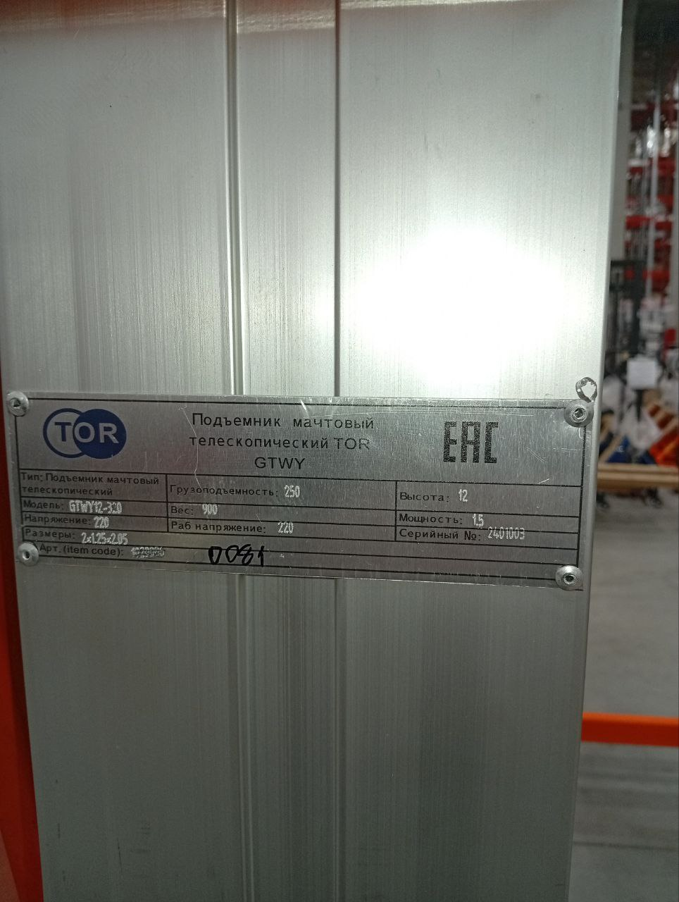Подъемник мачтовый аккумуляторный 250 кг, 12/14 м, 24/80 В/Ач TOR GTWY12-320 DC 3-мачтовый в Челябинске