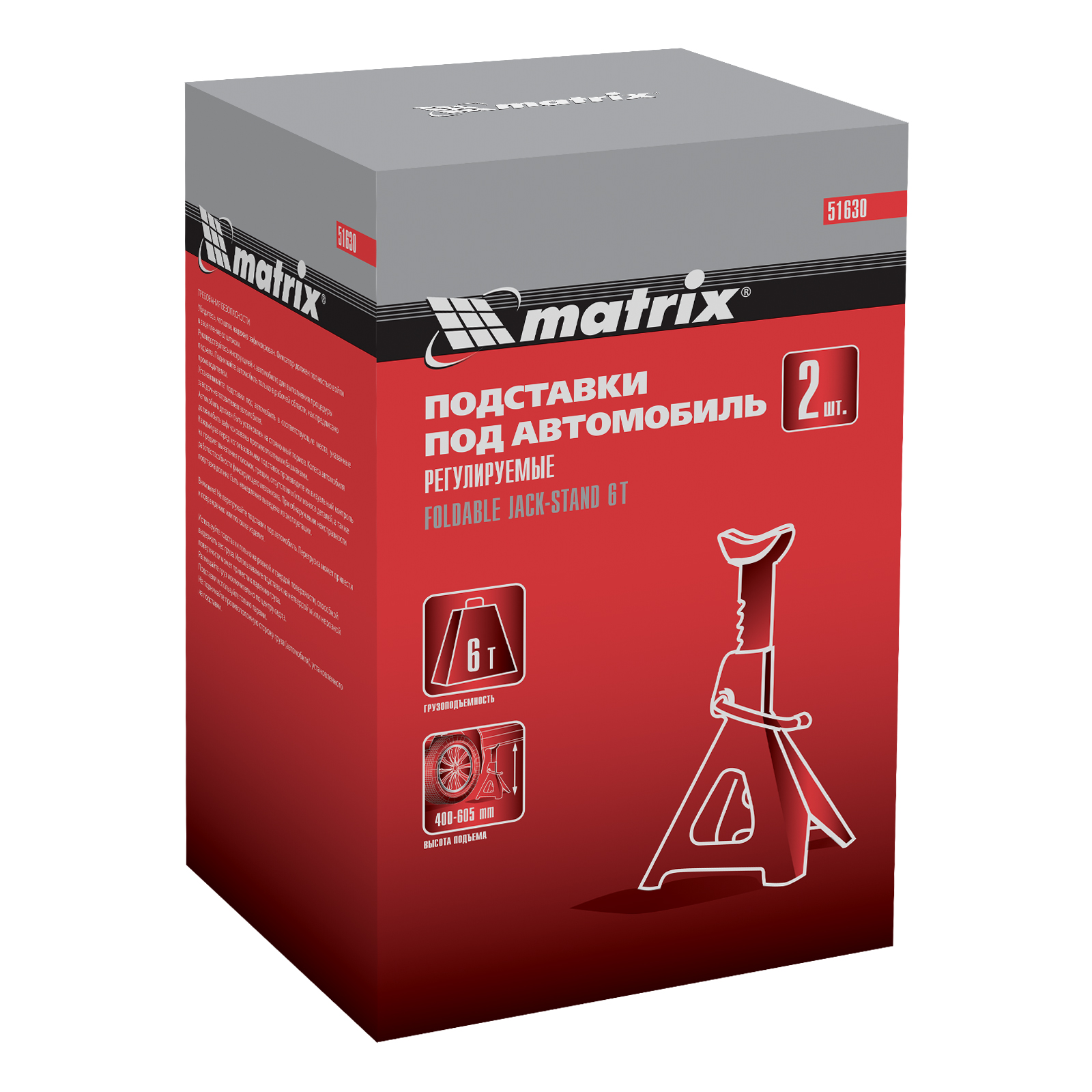 Подставки под машину регулируемые, 6 т, H подъема 400-605 мм, 2 шт Matrix в Челябинске