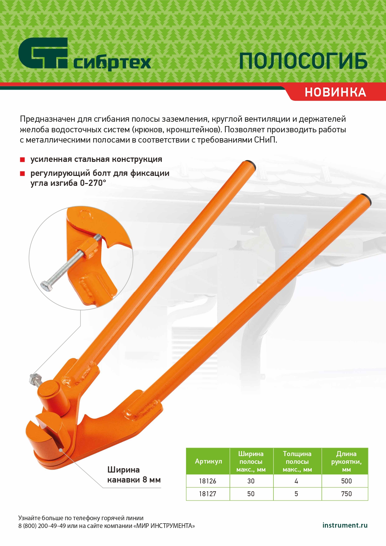 Полосогиб, 750 мм, ширина до 50 мм Сибртех в Челябинске