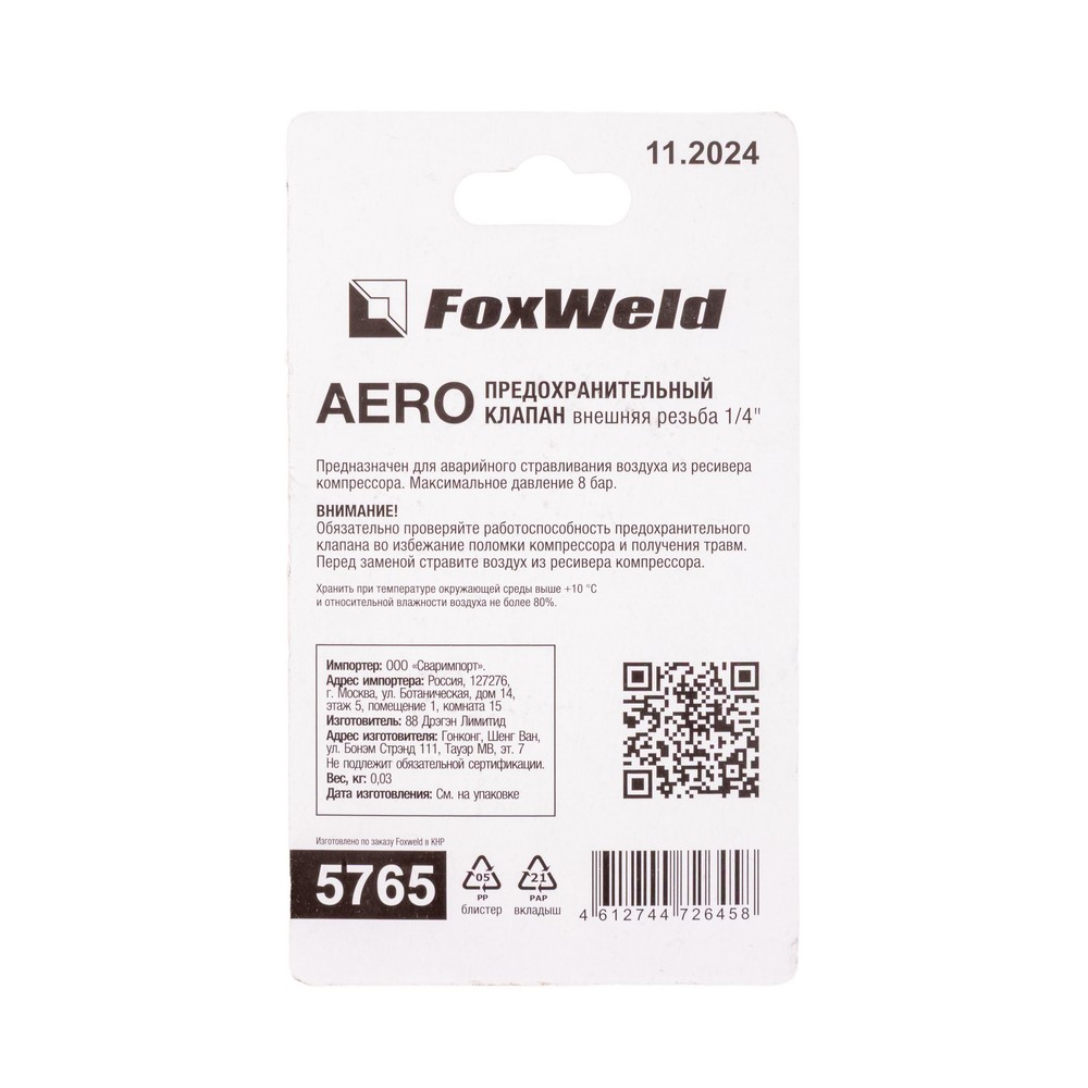 Предохранительный клапан с внешней резьбой 1/4" AERO в Челябинске