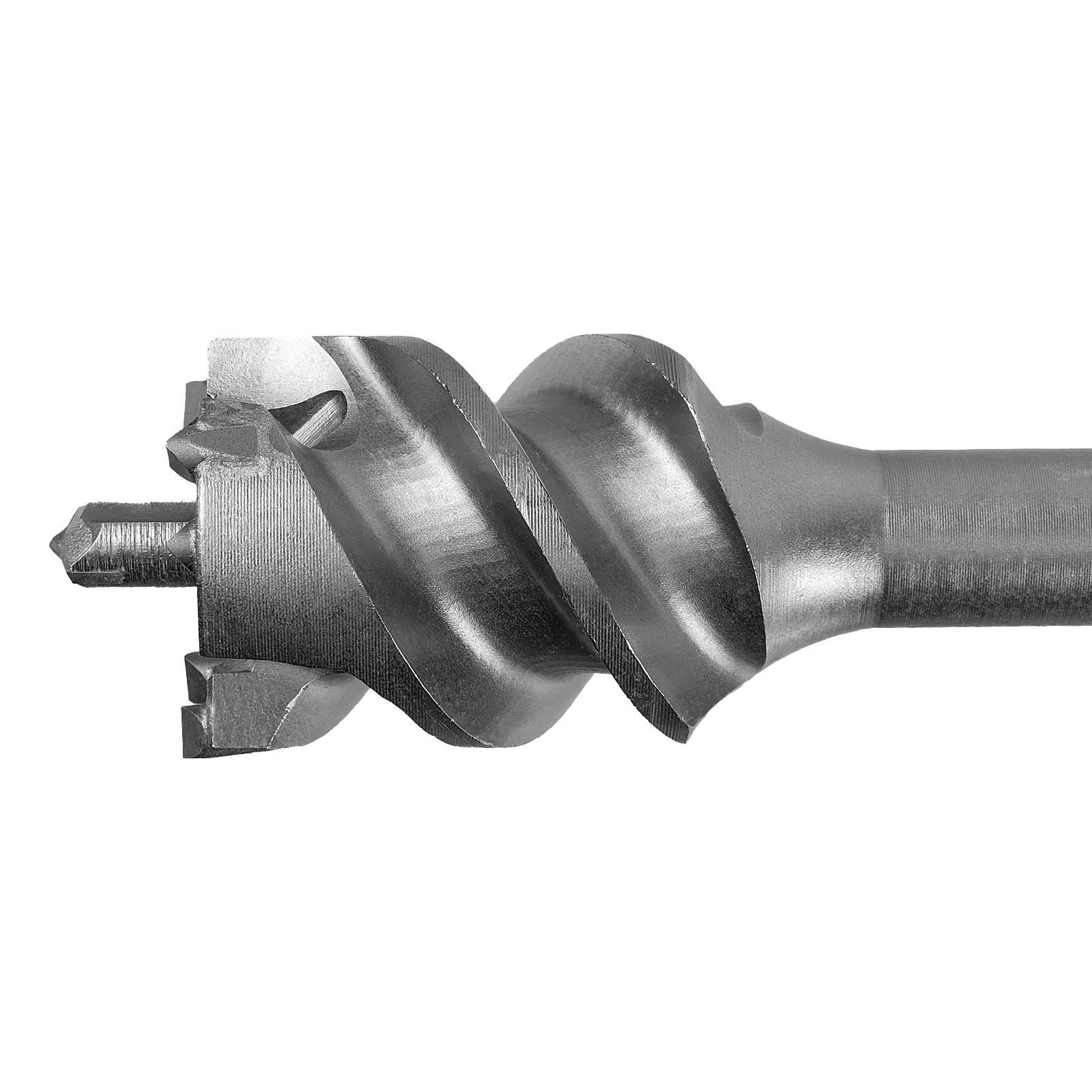- Эффективная работа — особая конструкция рабочей головки позволяет проходить армированный бетон без риска деформации бура.