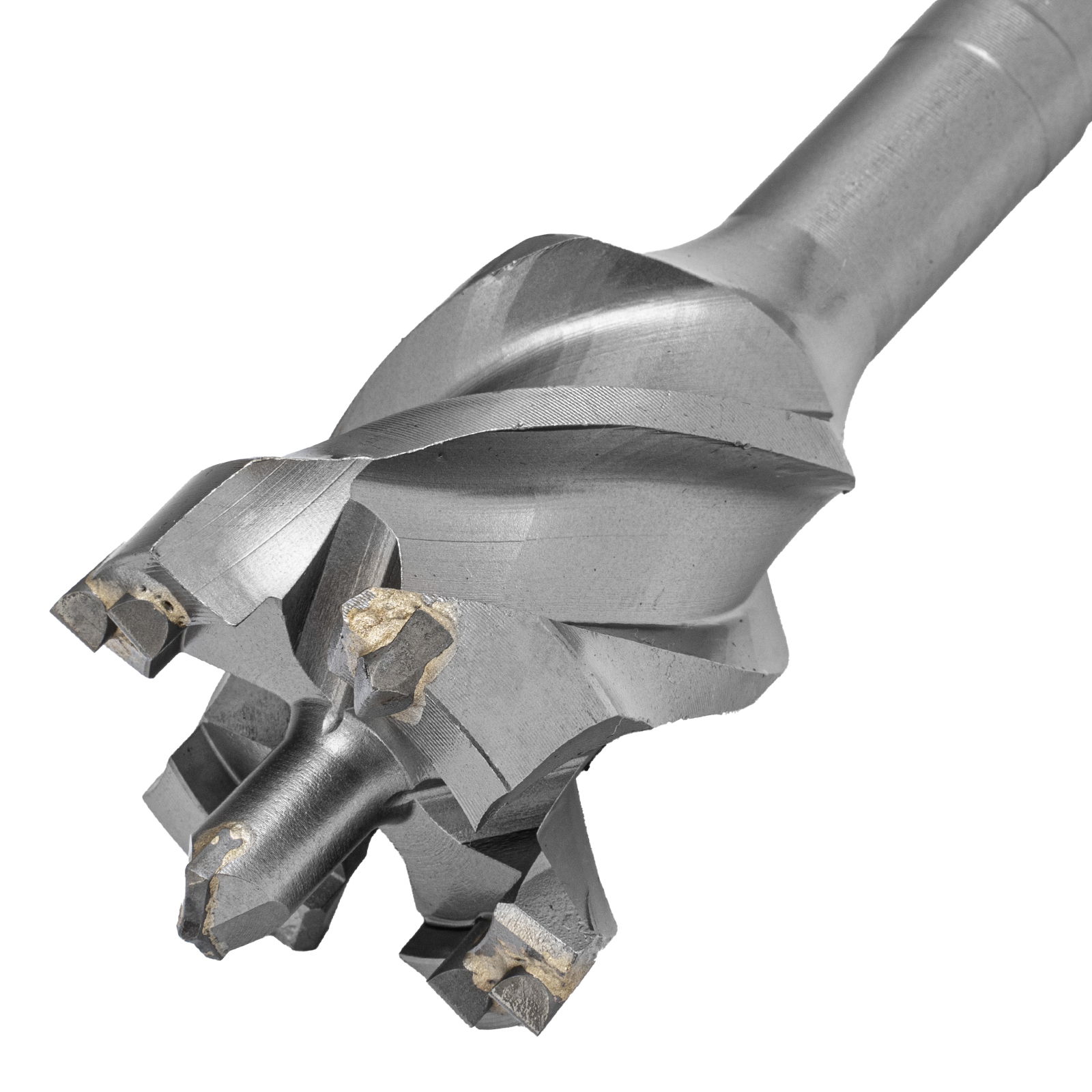 - Эффективная работа — особая конструкция рабочей головки позволяет проходить армированный бетон без риска деформации бура.