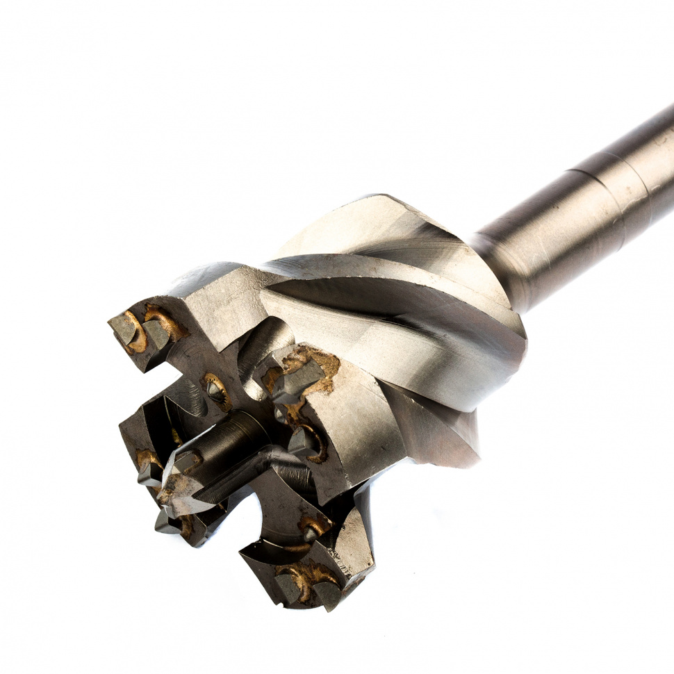- Максимальная прочность и долговечность — тело бура изготовлено из легированной стали 40Х, режущая пластина выполнена из сверхтвердого сплава ВК8 80-90 HRC с добавлением кобальта.
