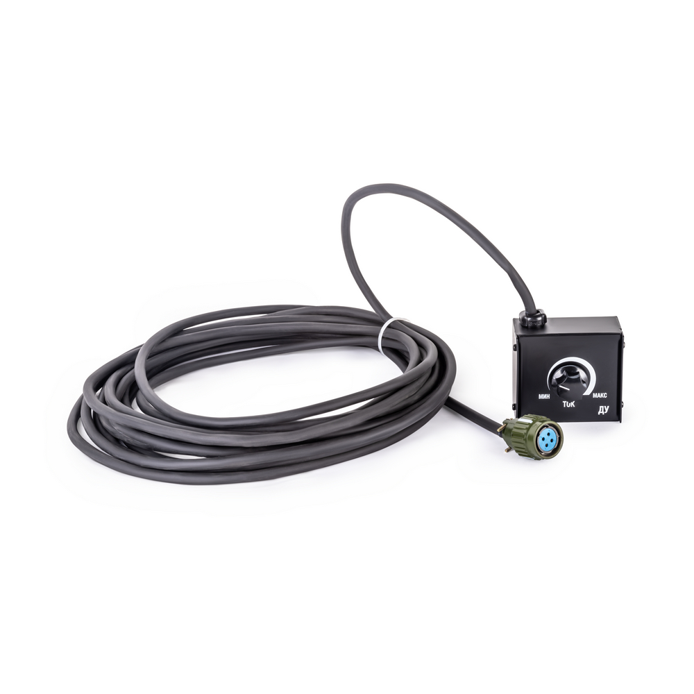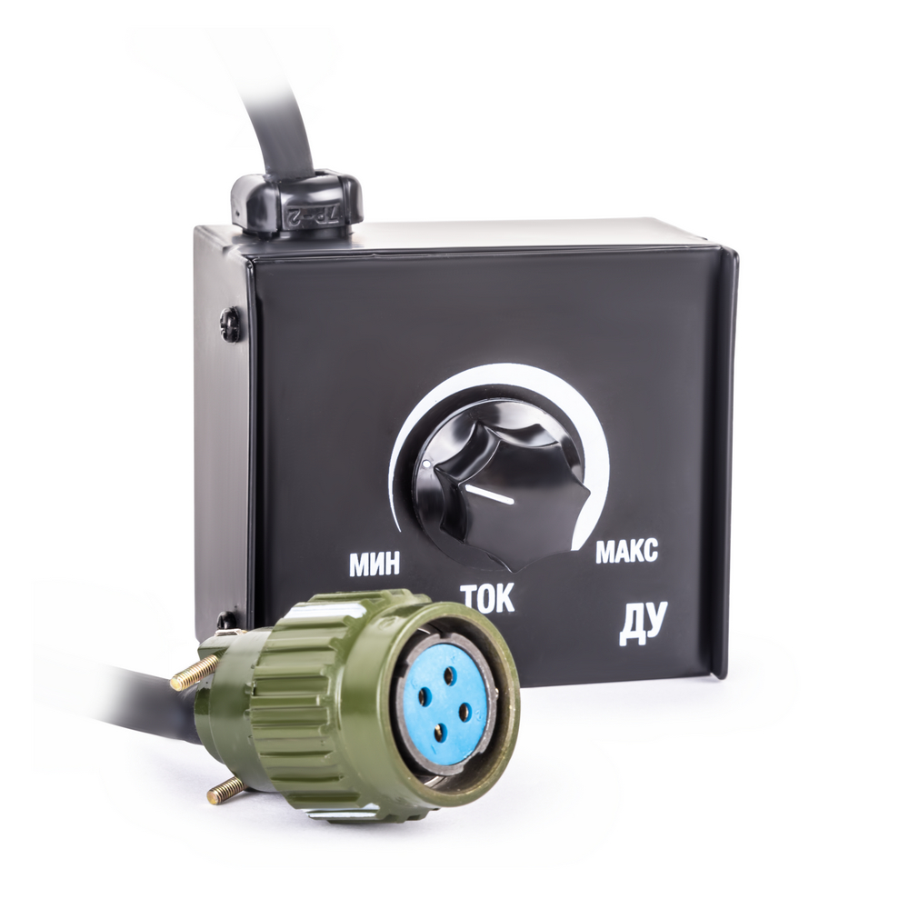 Устройство предназначено для дистанционной регулировки силы тока в сварочных инверторах FoxWeld ВД-306И / 400И / 500И. Пульт комплектуется десятиметровым кабелем управления и 4-х контактным соединительным разъемом "мама". На металлическом корпусе пульта установлен переменный резистор для выбора величины сварочного тока. Применение данного Пульта Управления особенно эффективно при сварке протяженных швов и использовании длинных сварочных кабелей, когда сварщик в процессе работы удаляется от источника тока на большое расстояние и корректировка тока становится затруднительной.