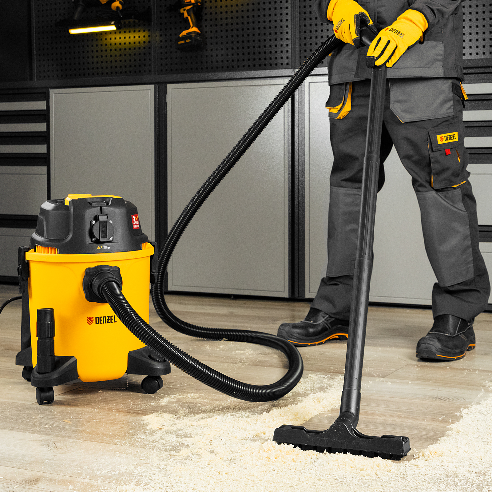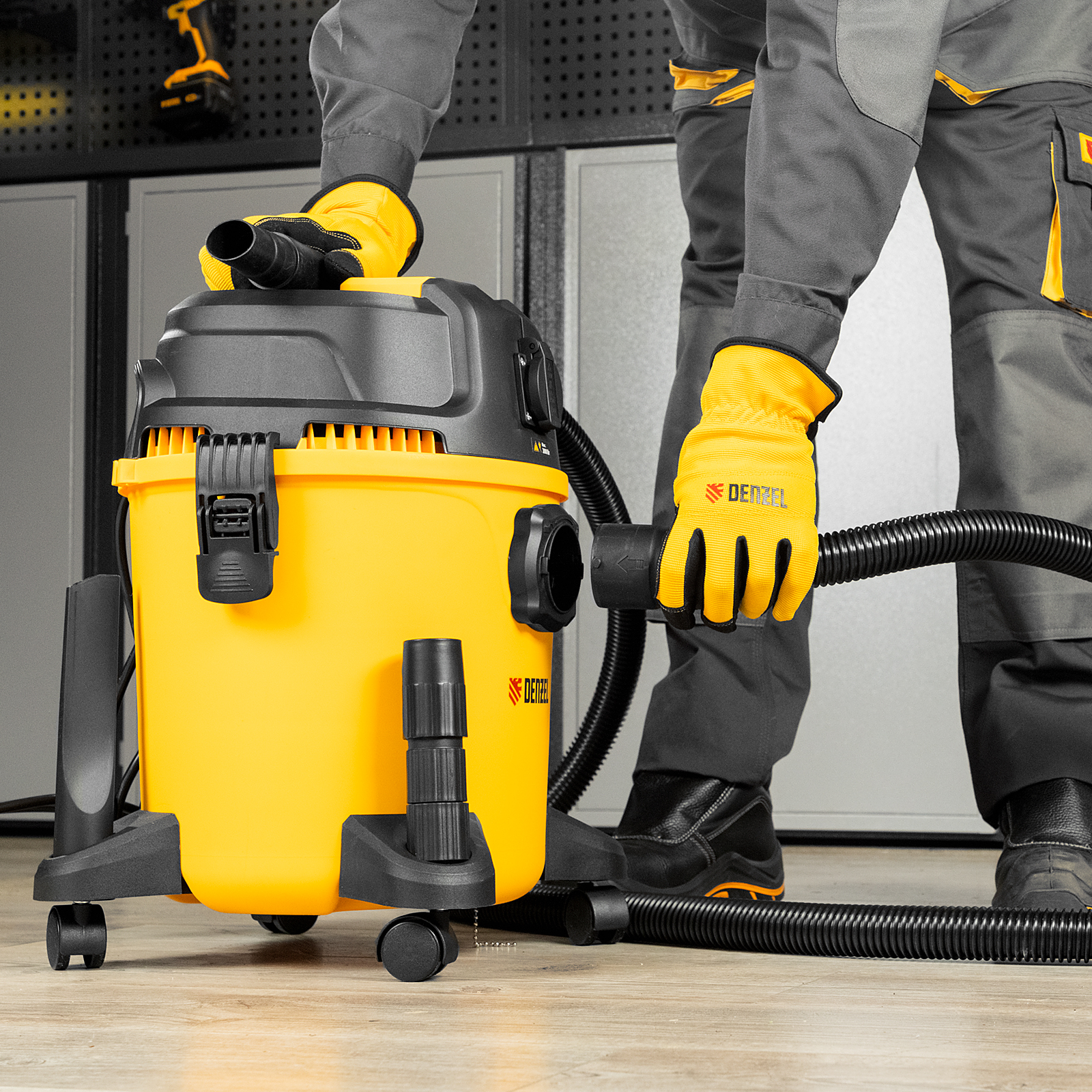 Пылесос строительный Denzel RVC20 28202 мощностью 1400 Вт, с баком объемом 20 л и шлангом длиной 3 м, оснащен розеткой с автосинхронизацией и предназначен для уборки бетонной, кирпичной пыли, опилок, стружки, также предусмотрена функция сбора воды. К пылесосу можно подключить электроинструмент, чтобы минимизировать количество пыли, образующейся в результате пиления, сверления, фрезерования. Техника используется во время проведения строительных и ремонтных работ, будет полезна для поддержания чистоты в мастерской, гараже, производственном помещении.
