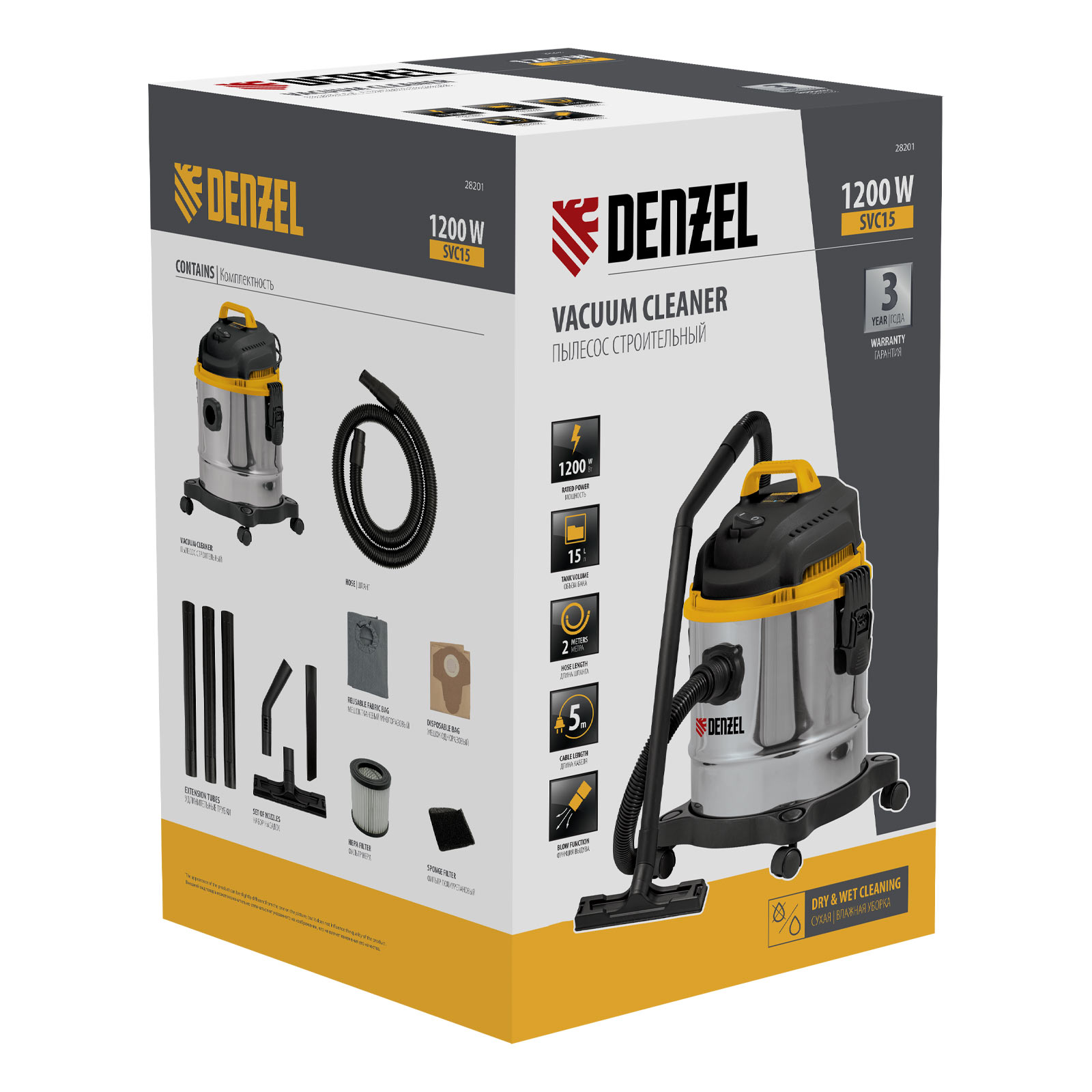 Пылесос строительный SVC15, 1200 Вт, бак 15 л, шланг 2 м Denzel в Челябинске