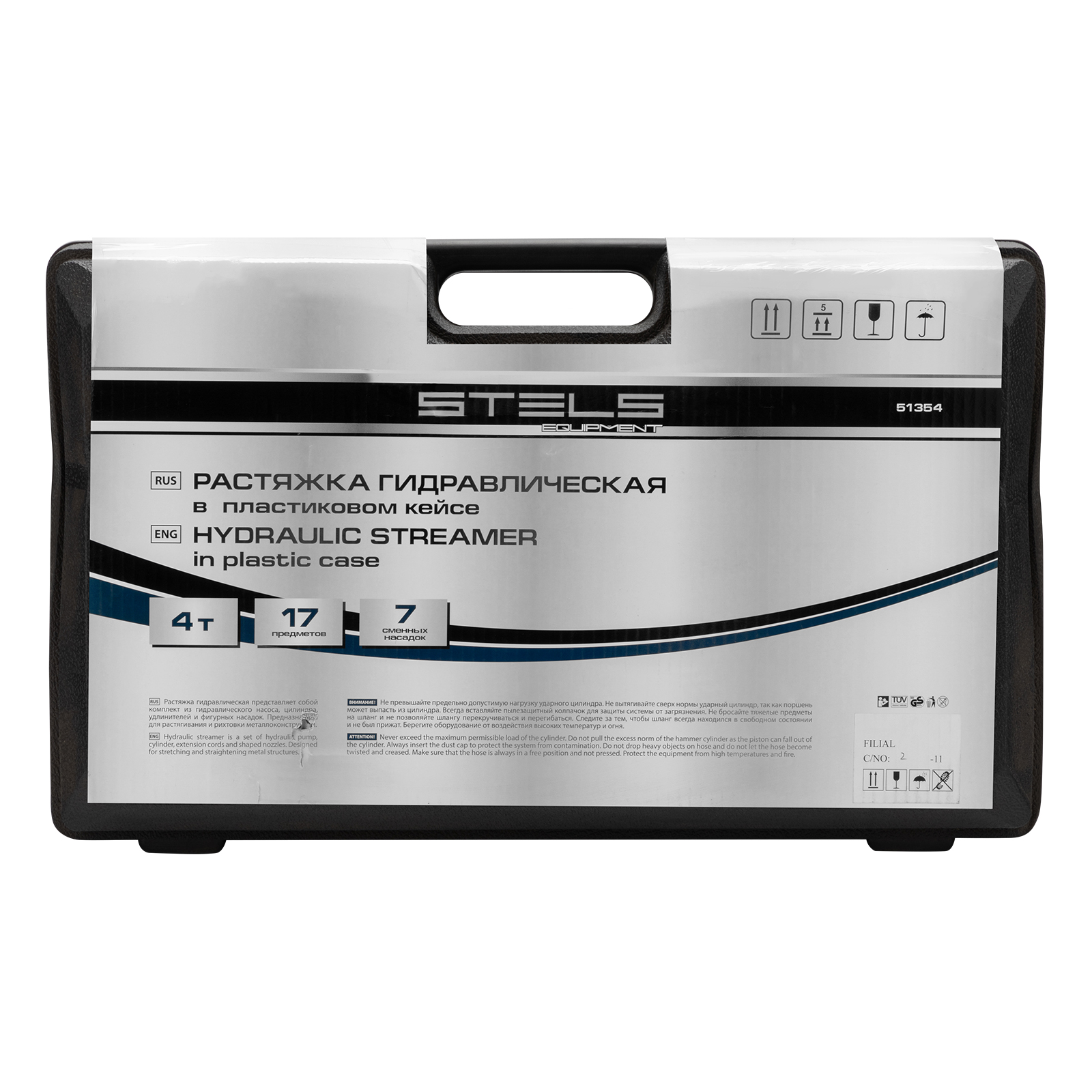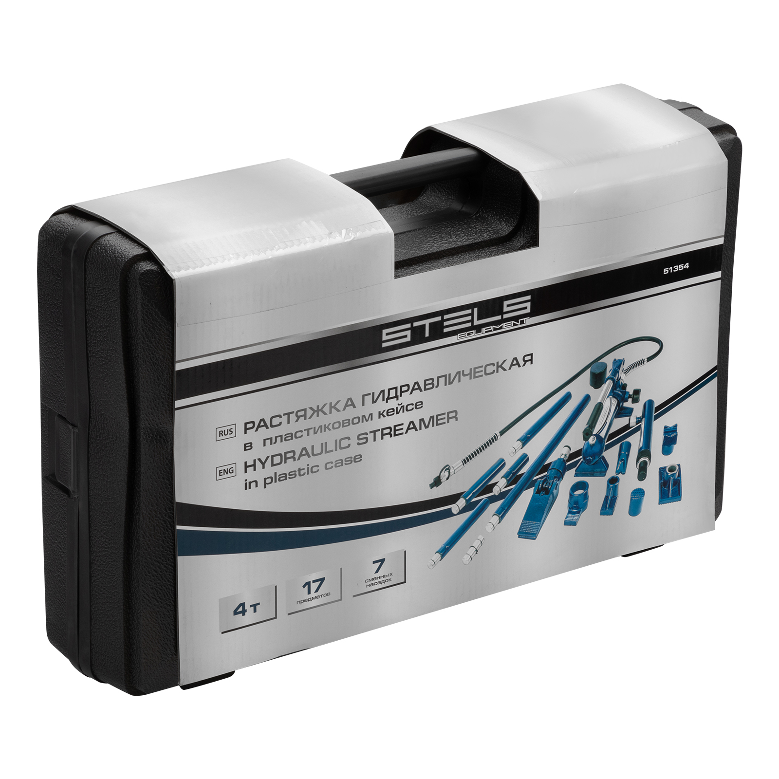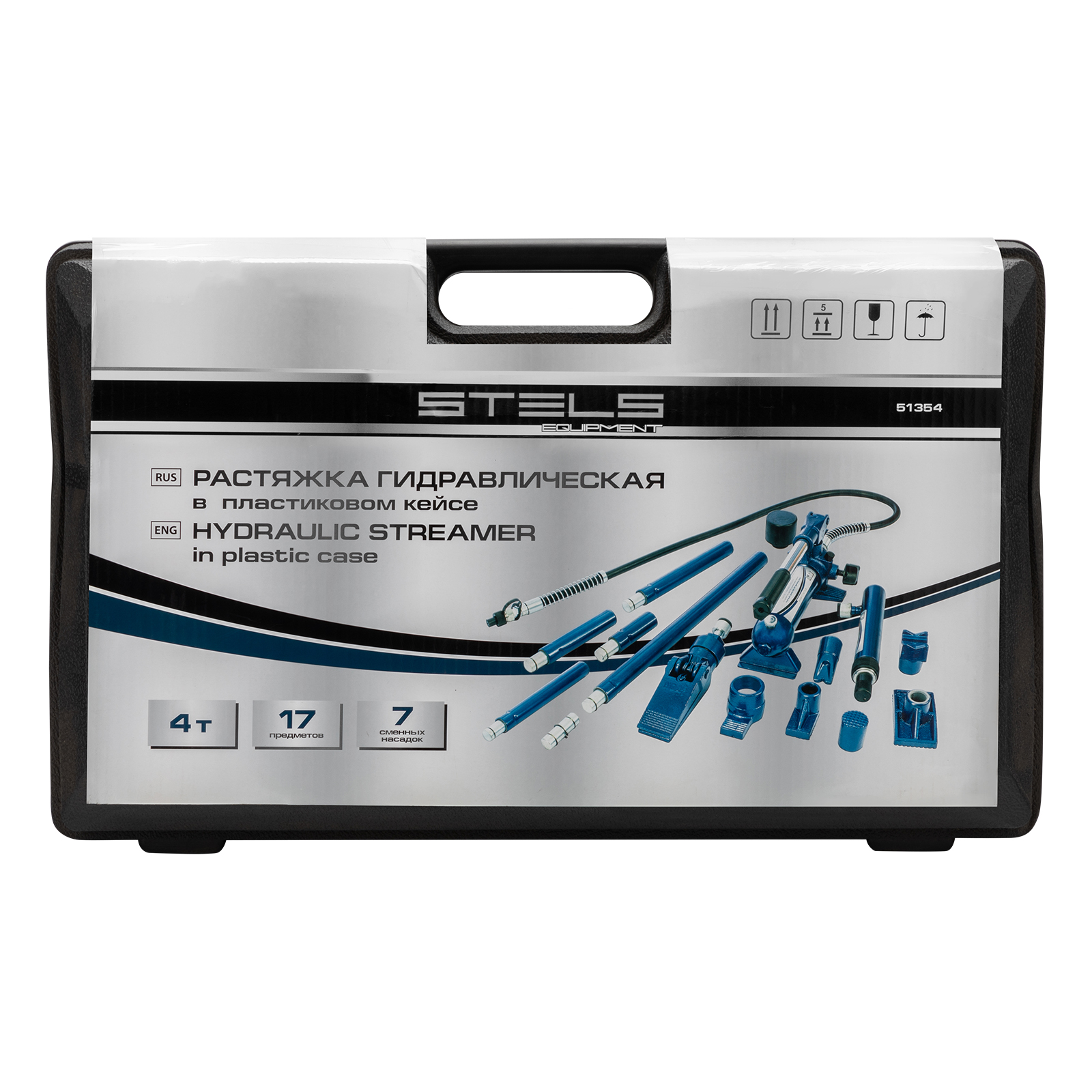 Растяжка гидравлическая, 4 т, набор из 17 предметов, 7 сменных насадок, в пластиковом кейсе Stels в Челябинске